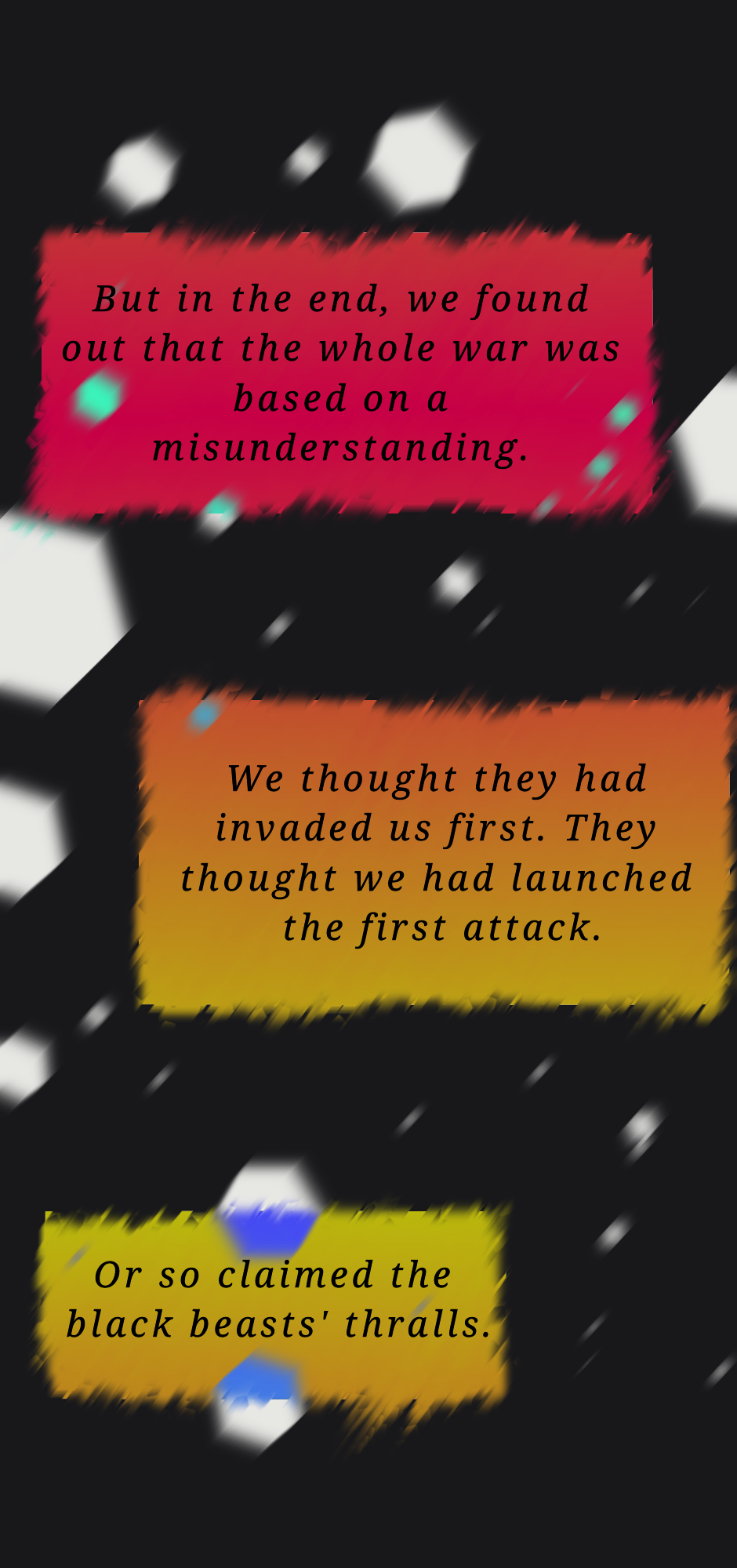 Everyone must come to terms with what they thought they knew. They must sift out the truth from the lies, and quickly.