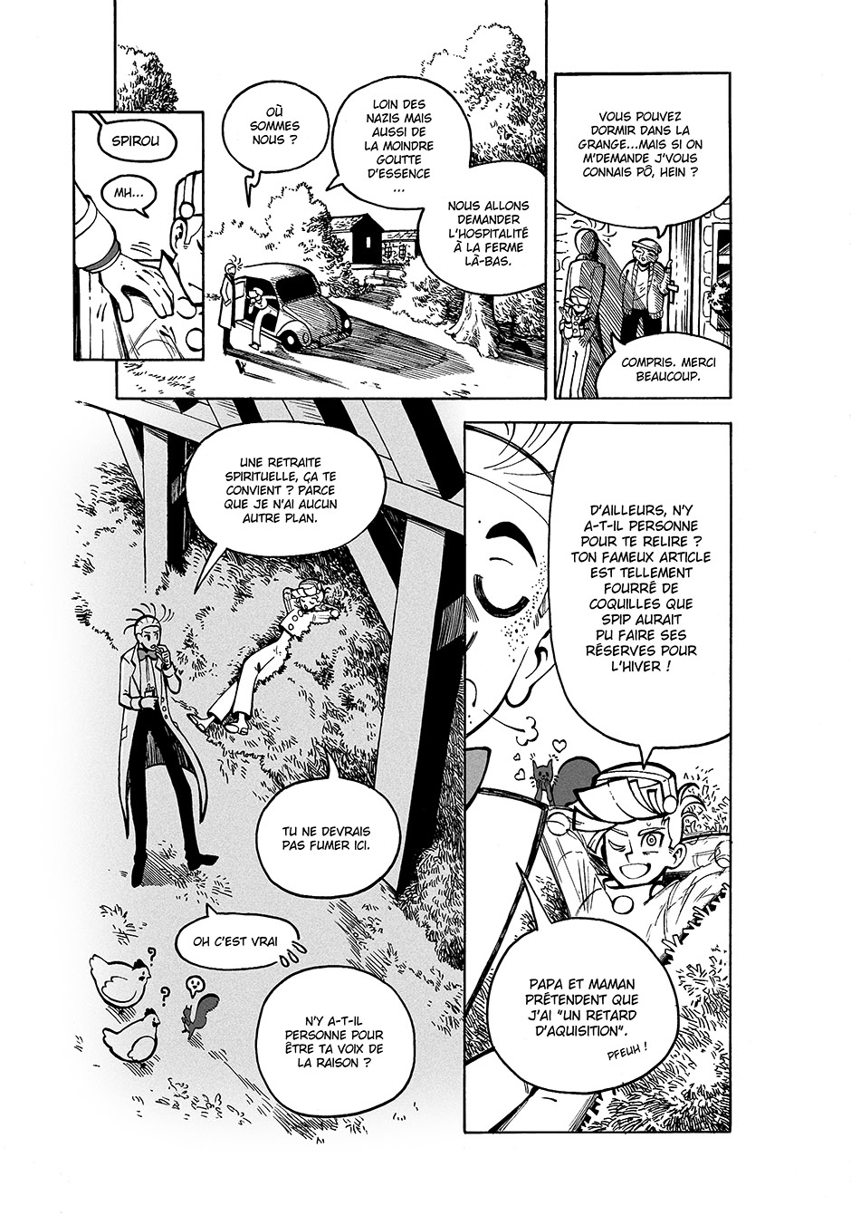 Doujinshi Spirou et Fantasio que je dessine sur mon temps libre. Prévu en 55 pages, je posterai de manière aléatoire, en fonction de mon emploi du temps ! Sinon, je suis une mangaka pro, j'ai un bon milliers de pages que vous pouvez lire, cherchez @mana_pany sur le net.
