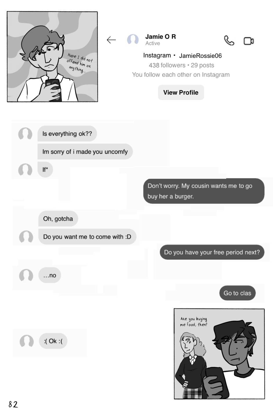 He leans on his best friend, Andrea Carbajal, who is a bit preoccupied with her own crush on the transfer student, Tasha Greene.