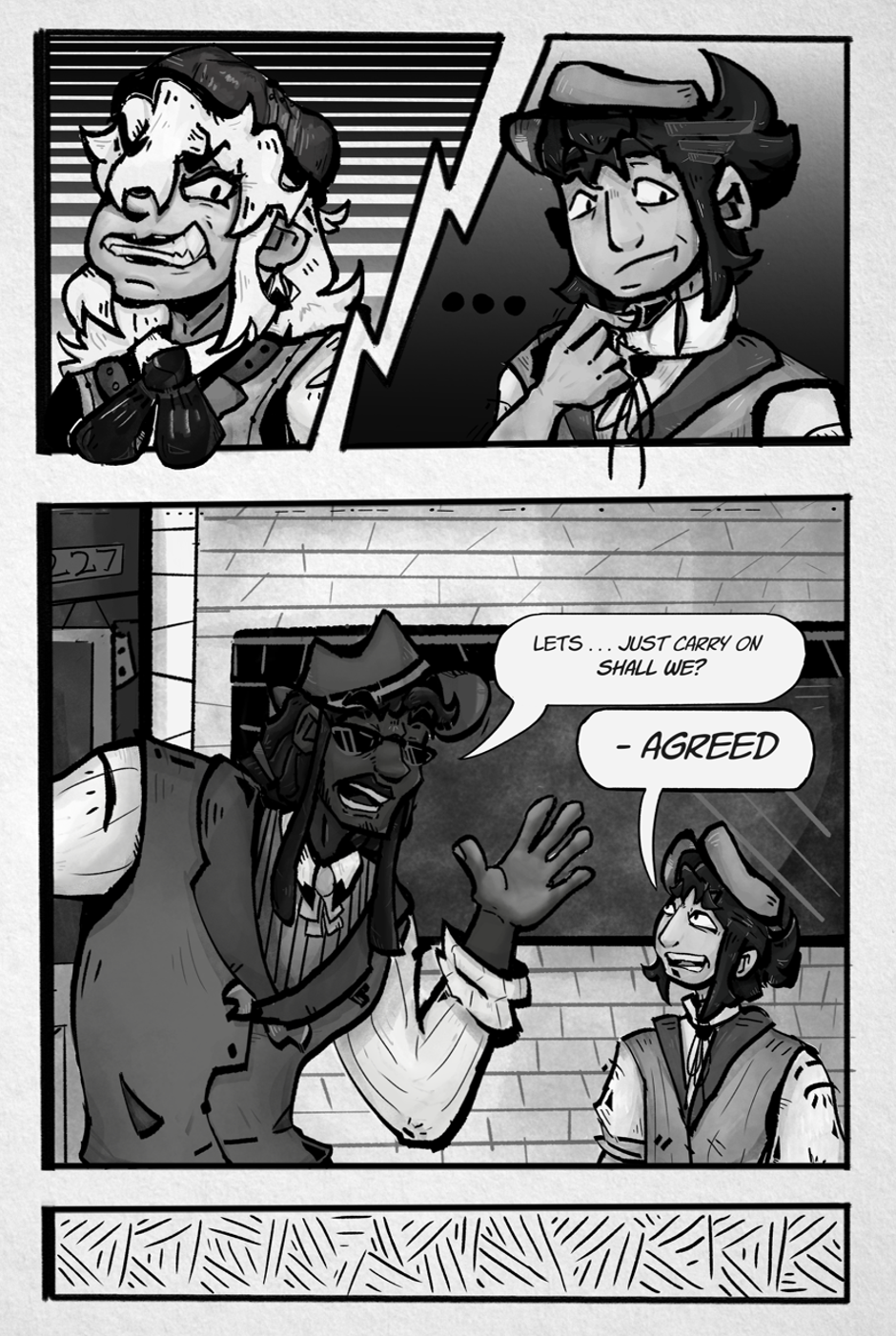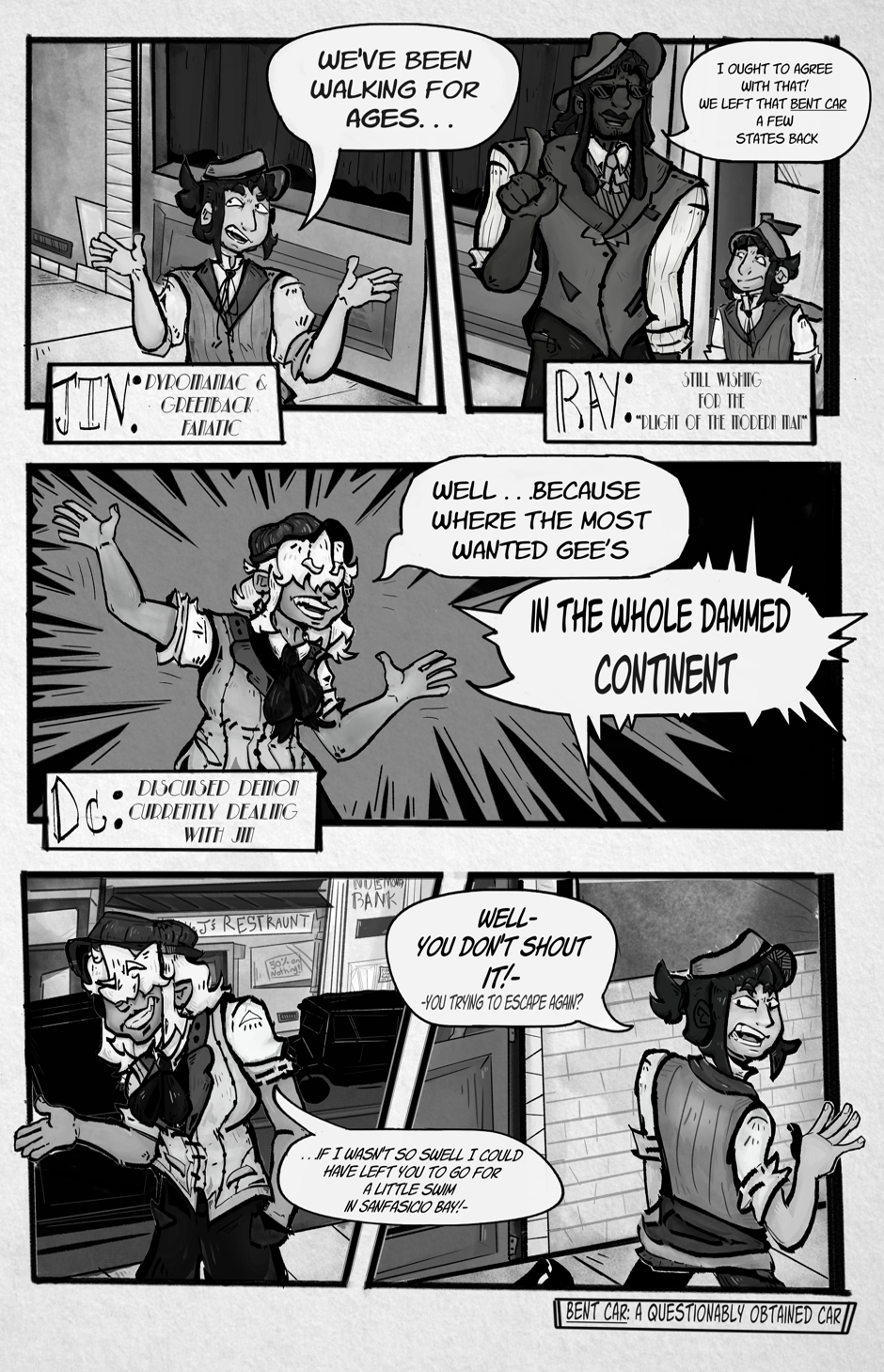 This fan-comic follows Ray and Jin a dynamic duo of rap & ragtime loving rapscallions make a deal with a mysterious benefactor going by the title of “Dc” to get out of prison, leading them down a path of dangerous (sometimes magical) adventures involving the prohibitions of the day in an alternate more musical version of the roaring 1920s 一 Take a break from your busy life to look into the fantastic .... Stay tuned!