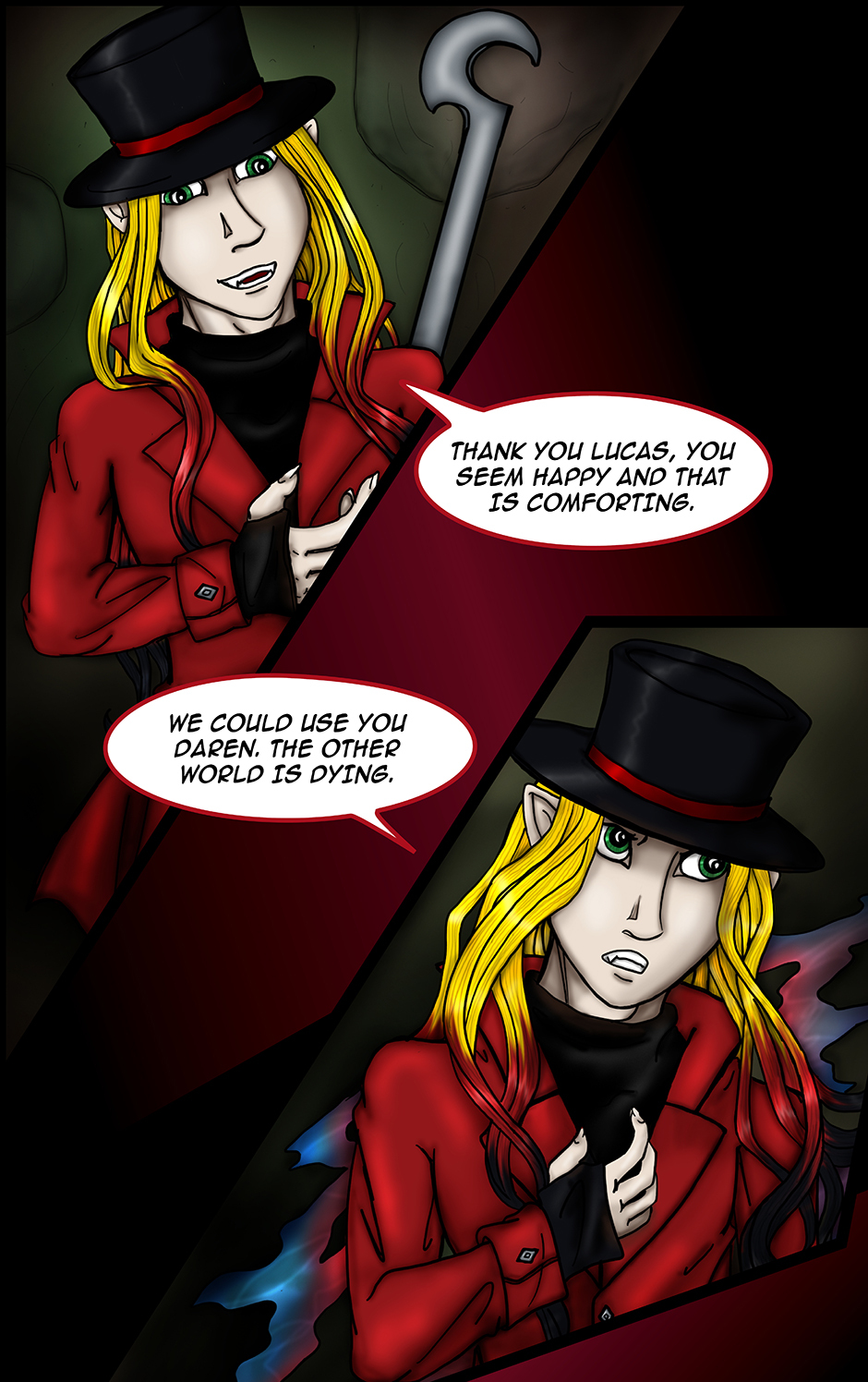 Daren is just your average gay vampire fledgling, stuck between trying to advance his gothic fashion platform and working with a cat goddess to help save his home planet.