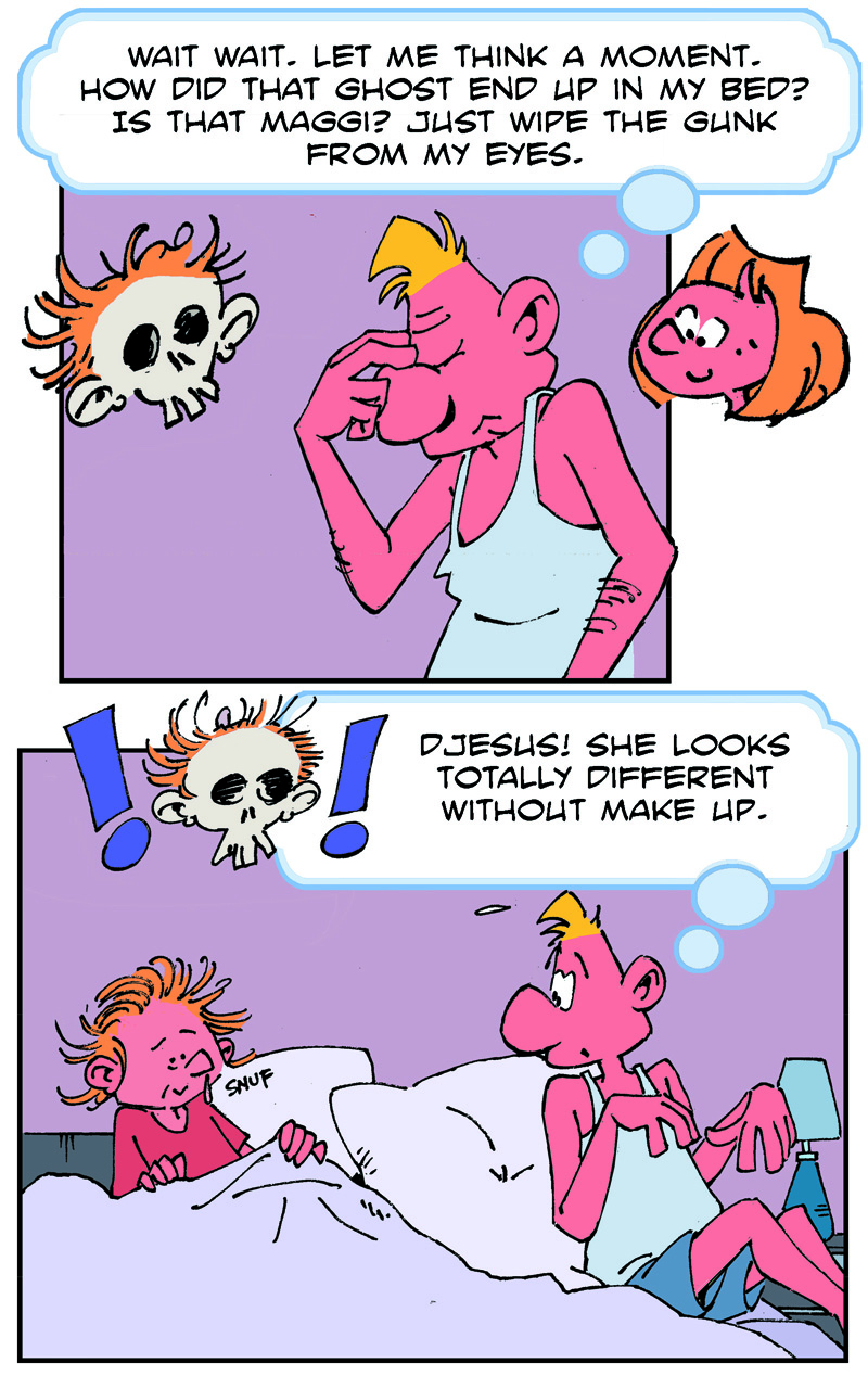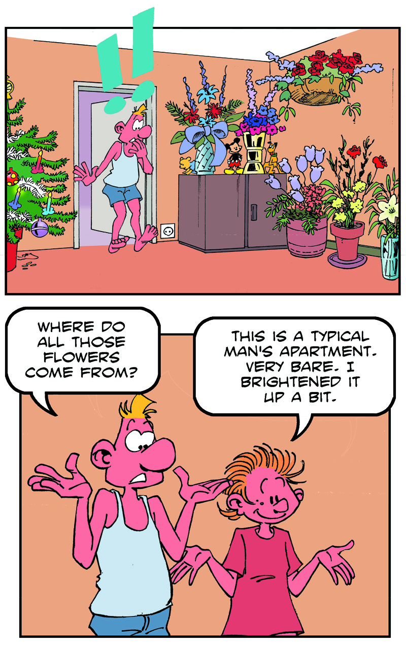 On the weekend, he goes to the pub to meet his friends, Fred and Stan.
