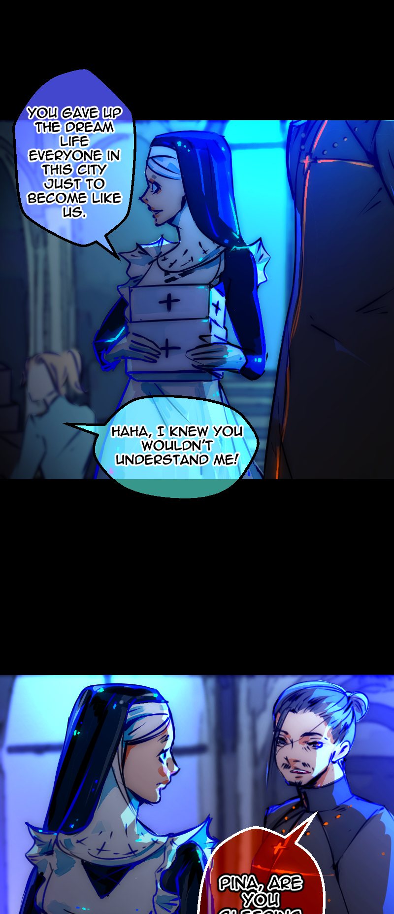 The working girl Pina Colada accidentally encounters priest Molla. After a brief dialogue about life, Padre leaves the bar but forgets his ring. The girl tries to catch up with him to return the ring but accidentally witnesses a murder that will impact her entire life.