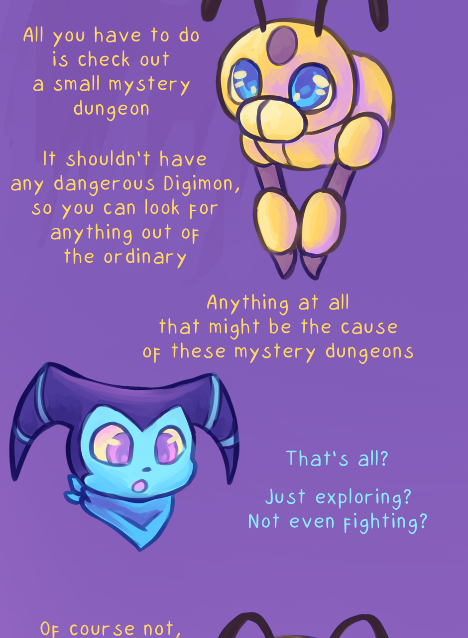 Having just been turned into a Digimon, SinBiyomon teams up with an Impmon in order to find a way back to their own world. As they adventure together, they find out more about mystery dungeons, a new phenomena in the Digital World, and the strange ever-changing Digimon that inhabit them.