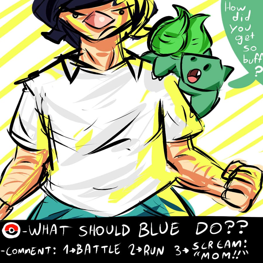 This is a pokemon story in which you choose the destiny of our pokemon trainer: Blue! Original name huh??? I will give you choices, and you choose what you want to happen c: HELP BLUE BE THE VERY BEST! MAYBE!