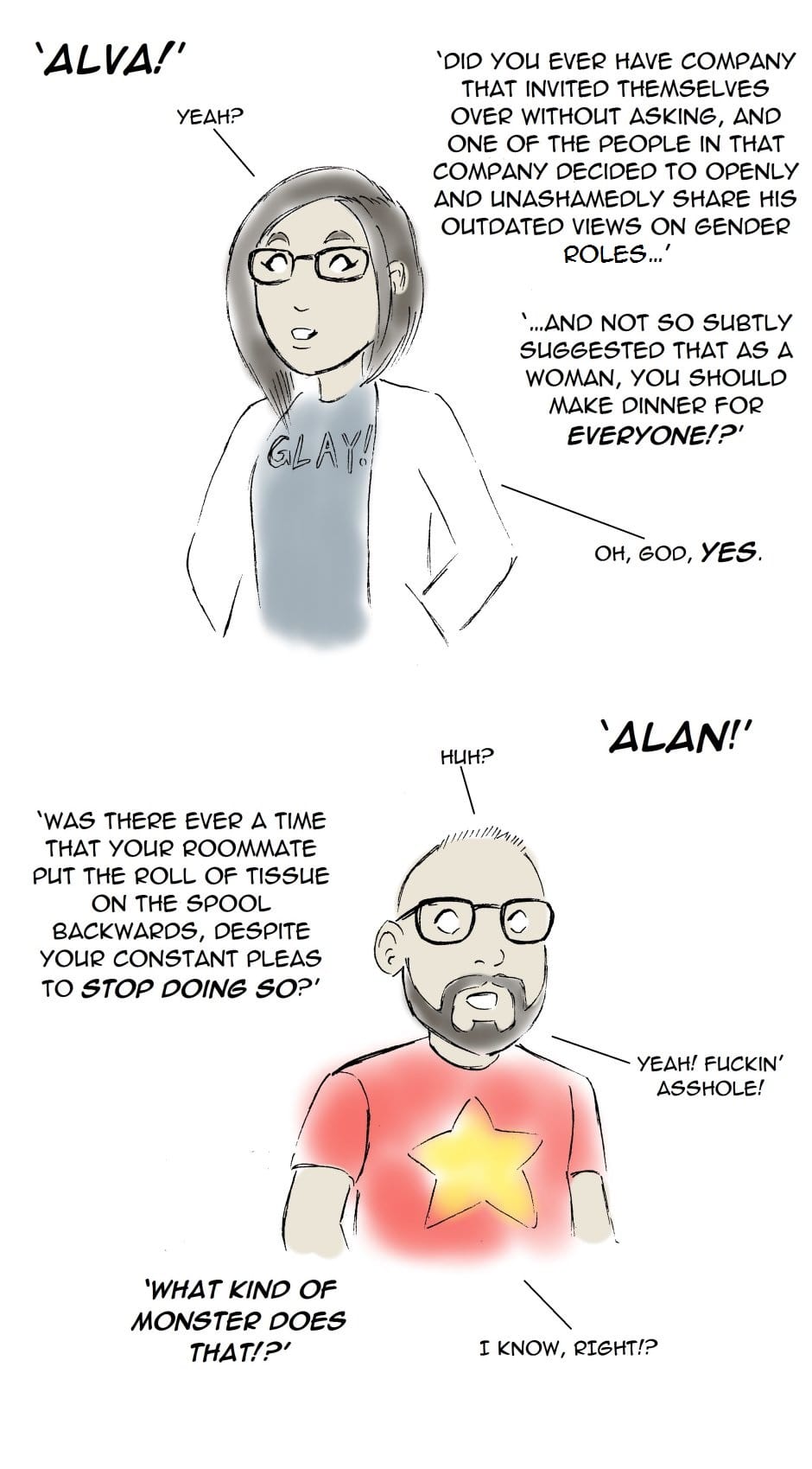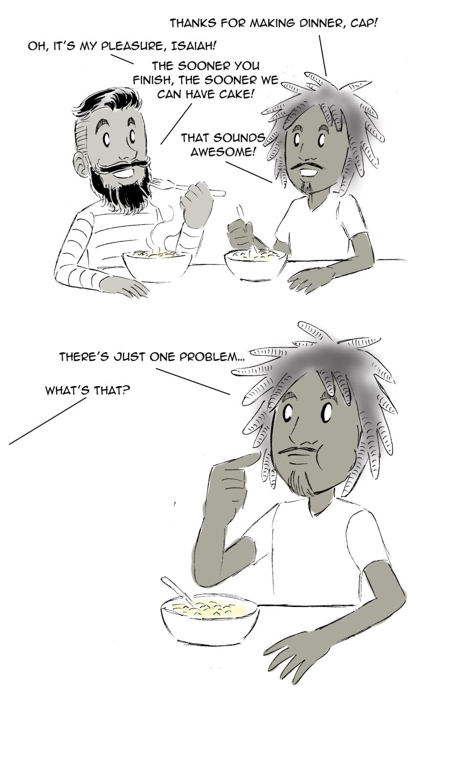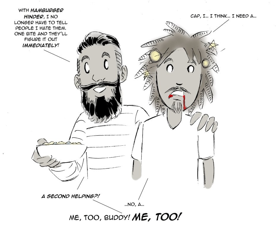 Man Up, Kid! features Captain Revenge; a comic book artist with a profound love of cake. This series is updated only as often as Stephen Patrick Kelly can think of a strip that passes muster.