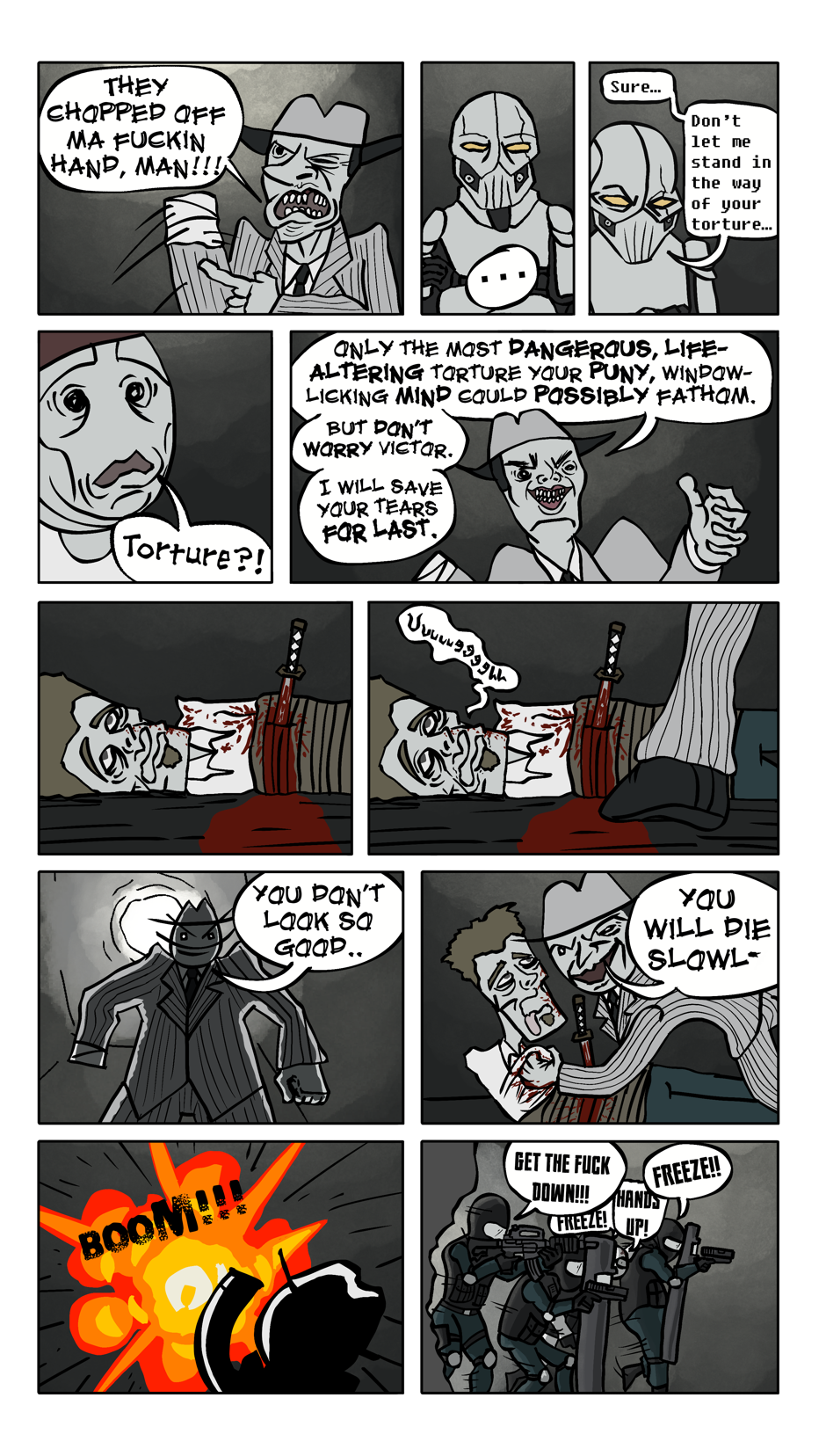 Dive into the gritty yet comically absurd world of "H.I.T. MEN," a comic series that chronicles the misadventures of Victor Johnson and John Robertson, two guys that have lost their jobs in the 2008 recession, now trying to make it in life as would-be hitmen. With no job too small and no target too sacred, they find themselves in over their heads when they inadvertently eliminate a made man from the Italian mob.
