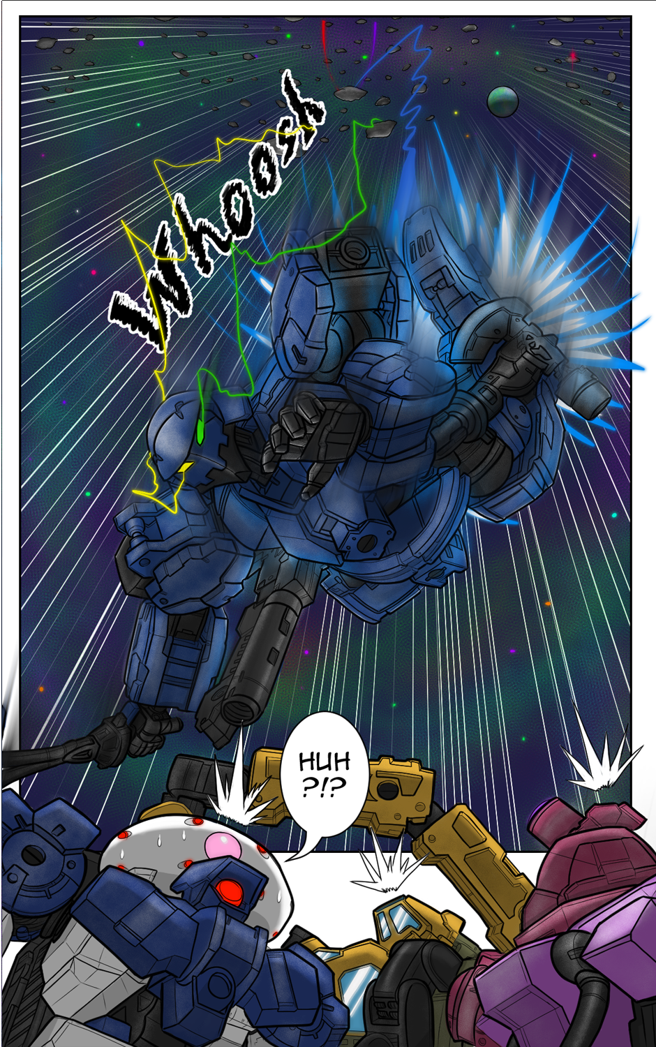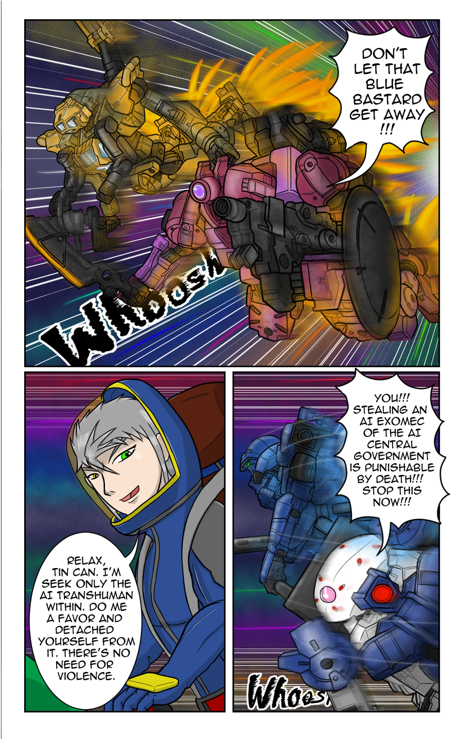 In a distant galaxy ruled by AIs, space couriers Ele and her team are entrusted with a mysterious cargo: an empty AI Transhuman body. Pursued by AI agents, Ele must fight back using her Exomec, a customizable mech for space travel. As the chase unfolds, Ele, an AI existing within an artificial body, embarks on a journey to learn humanity and fight for her newfound freedom.