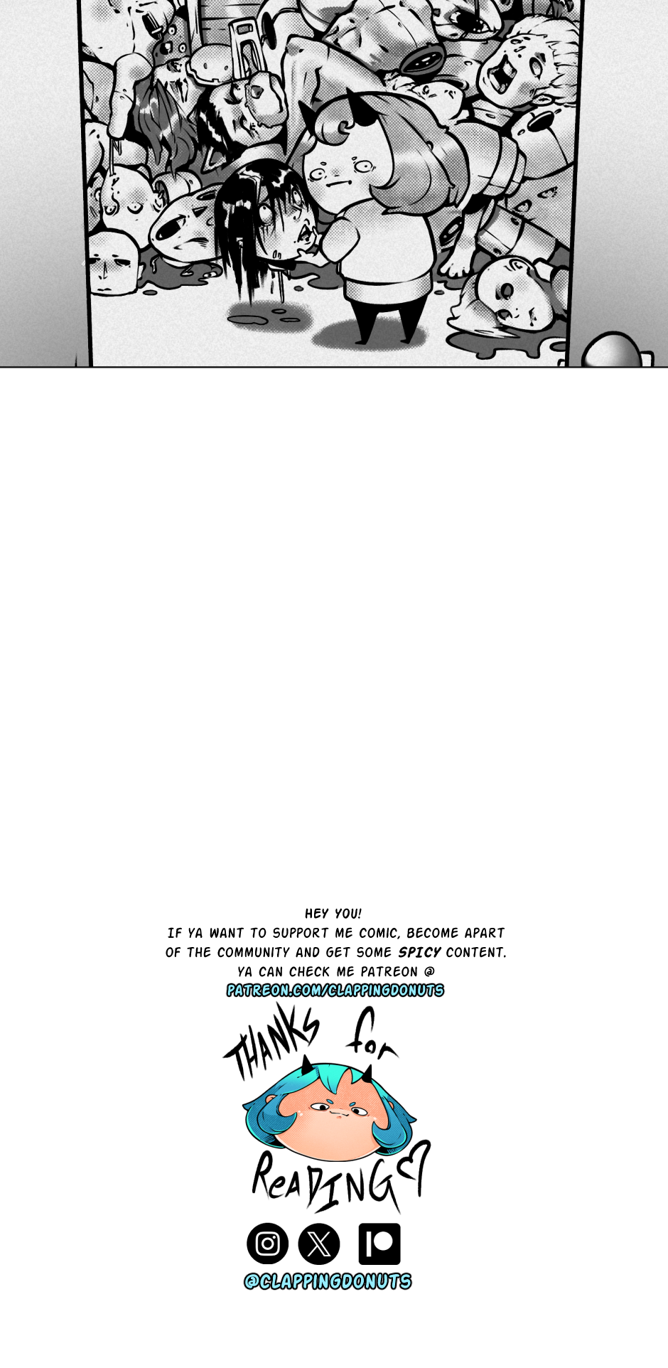 Oh no. _________ Ill be posting further content like this as it was the original idea of the comic to be a short form piece. So look forward to more gags and laughs as the story continues! Thank ya for reading, excited to see you next next Thursday!