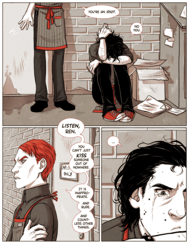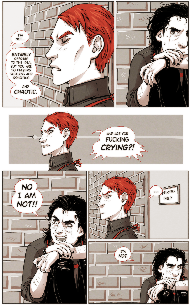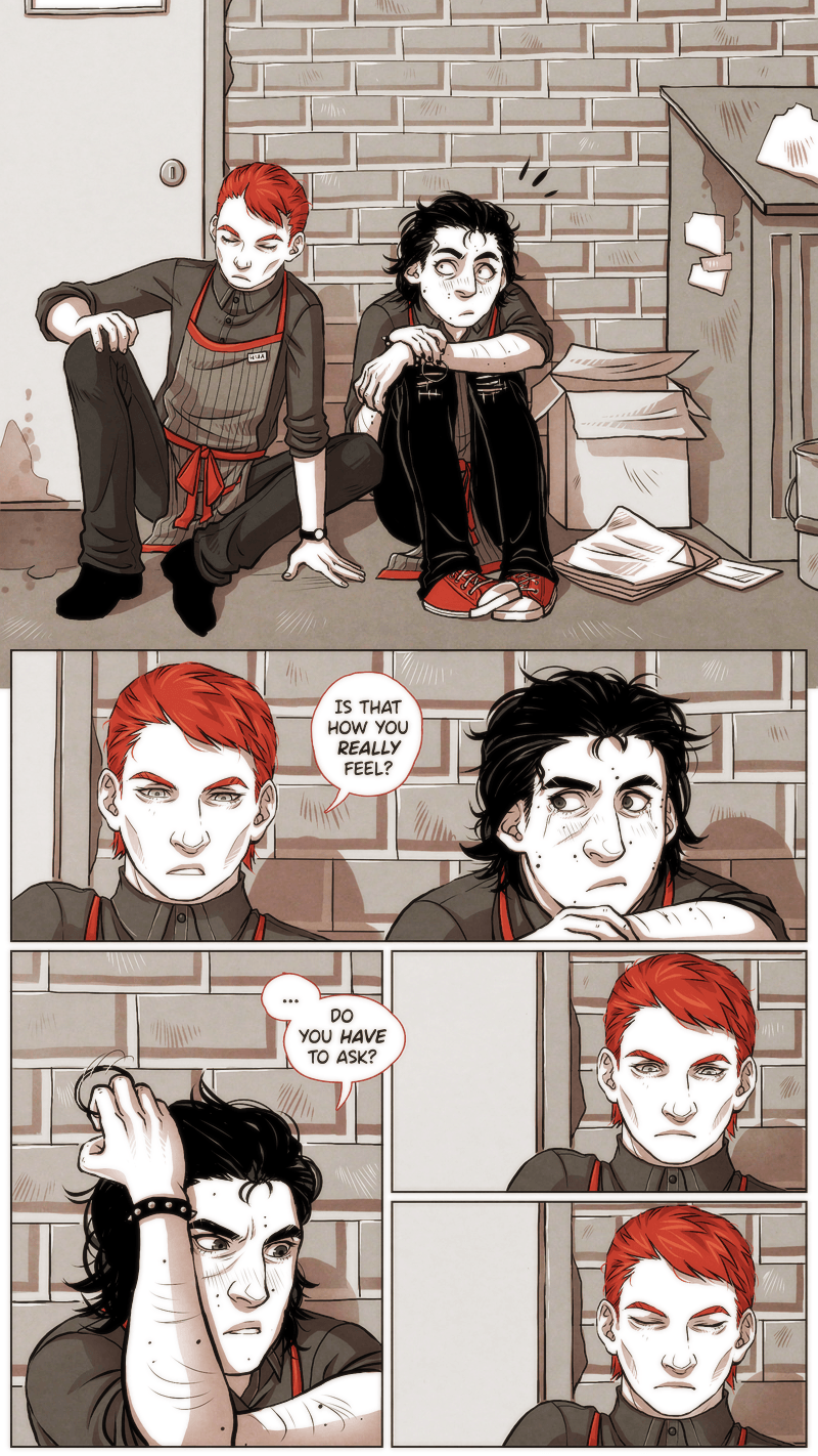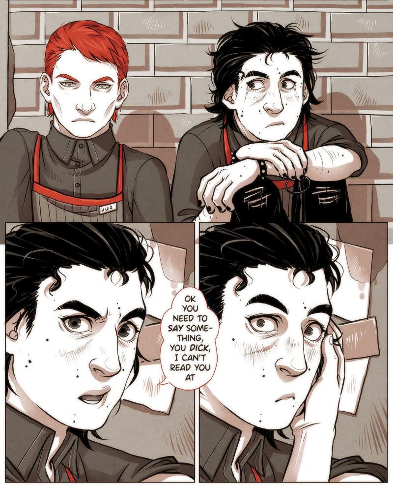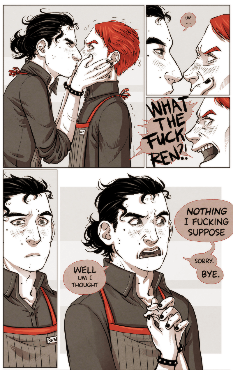 Store manager Hux and assistant-manager-reduced-to-mopping-the-floors-duty Ren work for First Order Coffee, a chain on the dark capitalist side of coffee business. Couple of blocks away an independently owned cozy coffee shop Irresistible proves to be a formidable competitor.