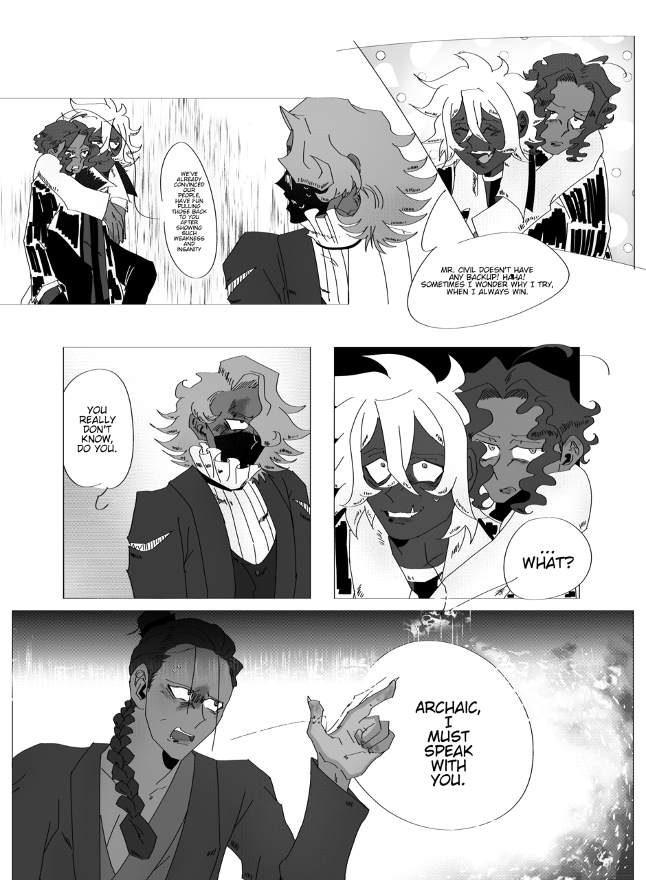 archaic is banking on the fact that the cultural and language differences between other spiecies' and humans will get people on his side. kyle is just doing his job and performing theatrics, he really doesn't have that big of a stake in the debate. archaic does. their interactions matter more than what theyre directly saying. kyle wasnt offended about anything until archaic brought his little brother into the fight and even rex knows LOL would have been a repeat of the first chapter.