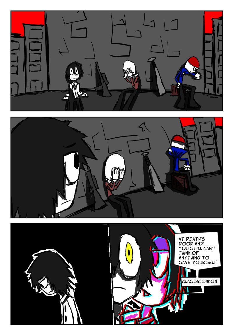 Follow Simon as he stumbles awkwardly through his new life, balancing a new, on call hitman job and college. A split personality, that's appeared before Simon but not too often, is now more seemingly more prevalent as he appears when Simon is most vulnerable. Stress begins to pile onto Simon's shoulders as the story progresses, with each new chapter a further descent into madness and anger.