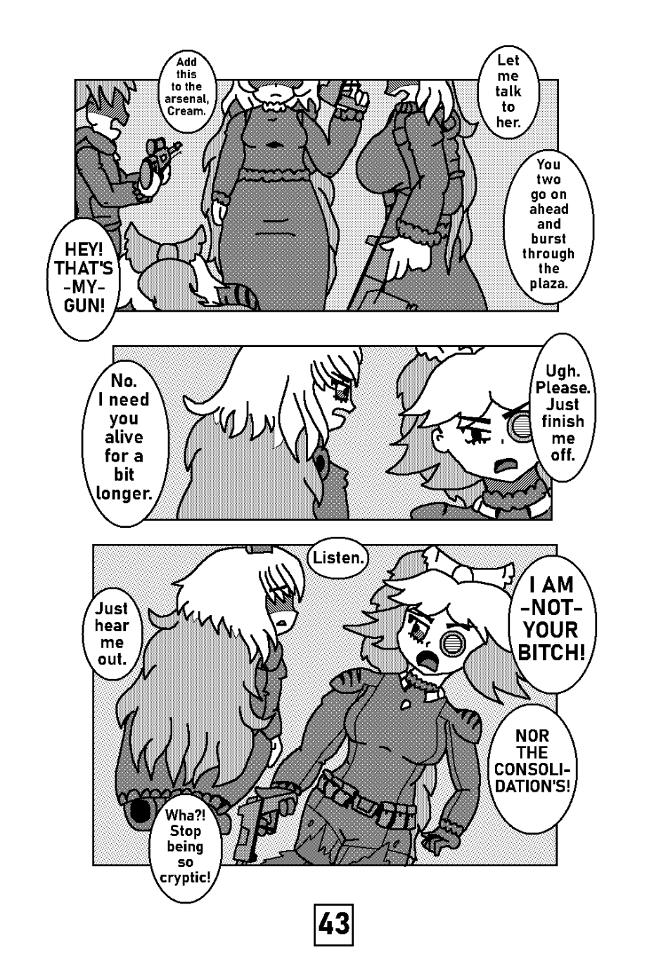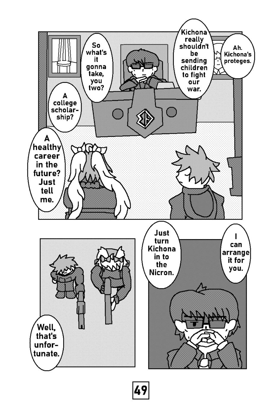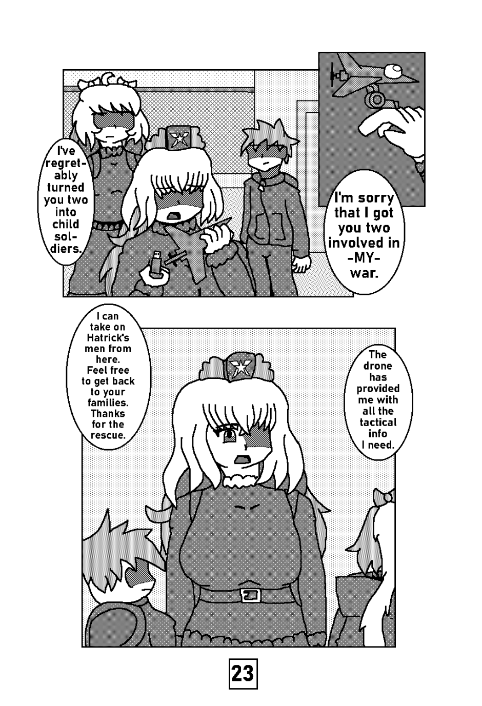 -THE BIC INCIDENT- Kichona, Cream and Crator are hunted by an unmarked military force that caused quite a stir in their quiet hometown of Birch Tree County. Kichona knows who this threat exactly is and is hesitant in bringing her proteges into this war.