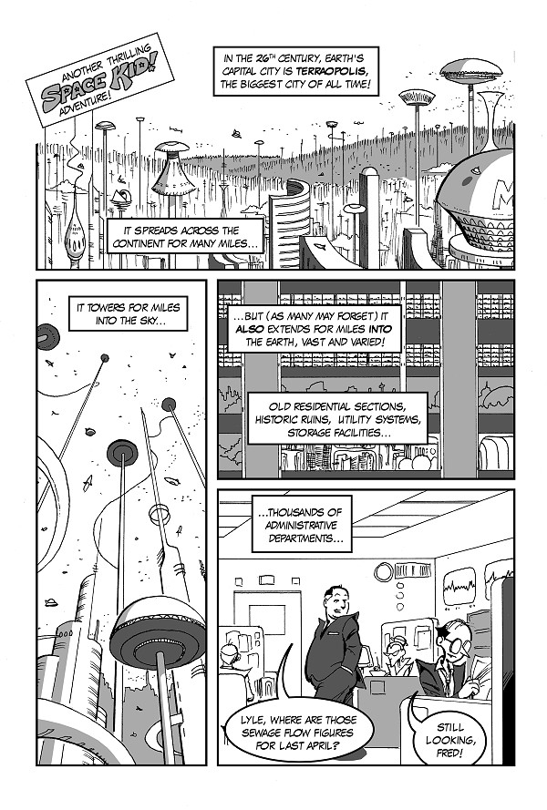 Terraopolis definitely shows the influence of places like North Am and Trantor, but is actually nowhere near as all-encompassing as either. The Earth of the 26th century as portrayed here, still has small towns and farmlands and undeveloped wilderness as well. That being said, Terraopolis is still pretty frickin big.