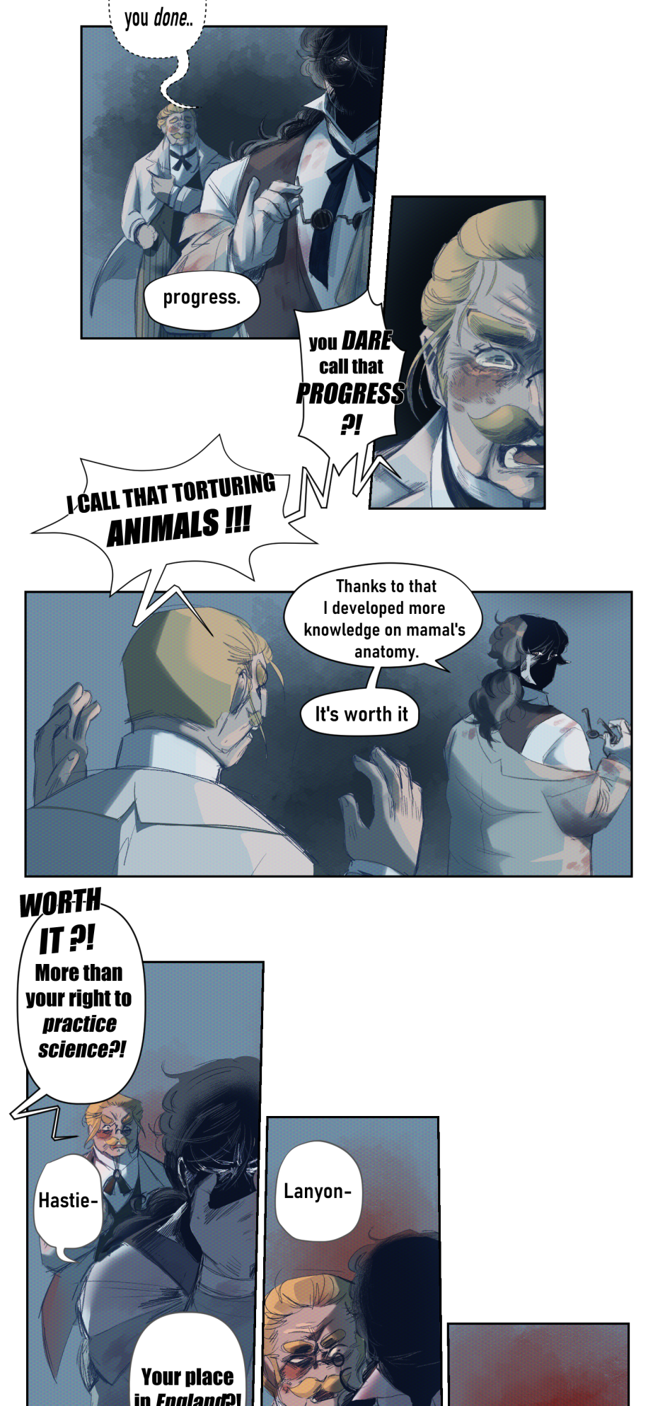 In this queer rewritting of "The strange case of Dr.Jekyll and M.Hyde" by Robert Louis Stevenson and "The Island of Dr. Moreau" by H.G.Wells, the evolution of this relashionship between the two scientist will be explore from 1847 to 1886, at different states of there life.