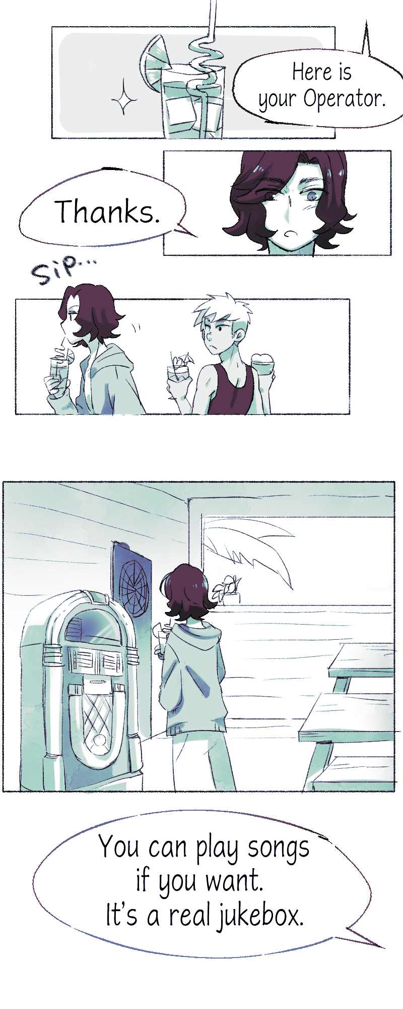 For those who aren't very familiar with alcohol; the Operator is a cocktail mixed with wine and ginger ale. Mika ordered it without wine, which meant it was just ginger ale. Also did you notice that there were two types of straws? The longer, fancier one is for cocktails and the shorter, undecorated one is for soft drinks!