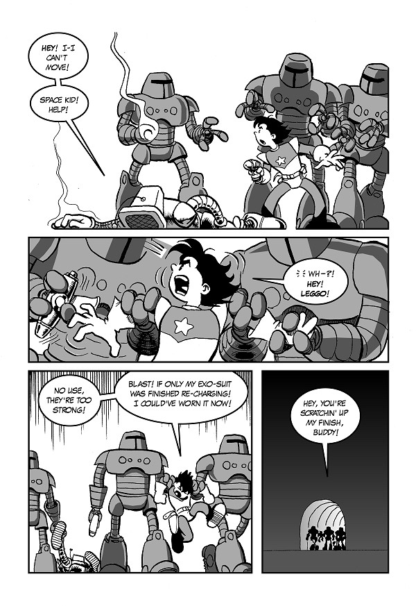 I’m willing to bet that these robots were influenced in large part by Cyborg 009 — as I recall, in volume 1 of that manga, there were robots that looked very reminiscent of gray men in armor. However, my bots here are not pure Ishinomori: in them I can also see bits gathered from a whole misty childhood of robot baddies…