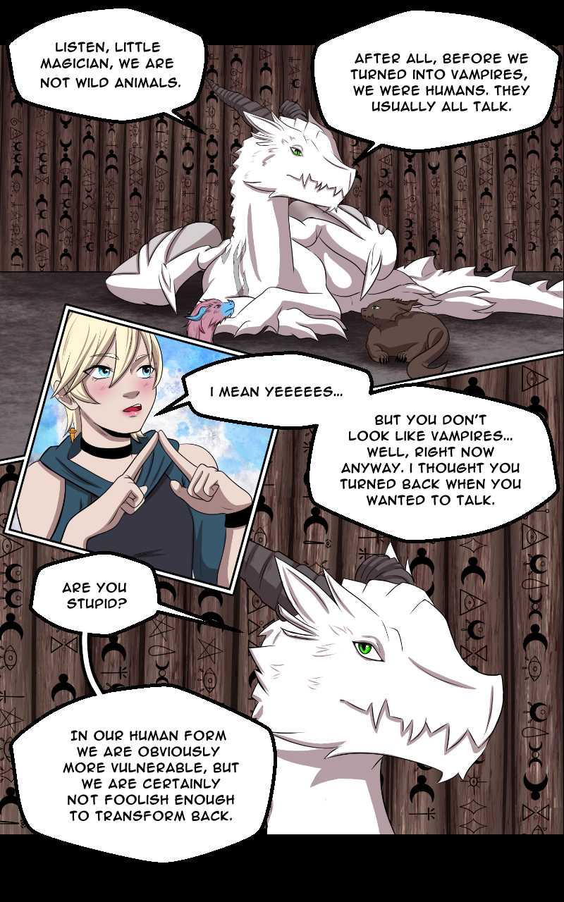 Theo is a young magic student. While he is still learning magic, his guild is trying to achieve immortality. The “Dragons”, an old vampire clan, are supposed to help them. Since they usually stay away from witches and magicians, Theo's guild master decides to take some of them prisoner. But these dragons are by no means wild animals... and Theo gets closer to one of the oldest and strongest dragons than he should...