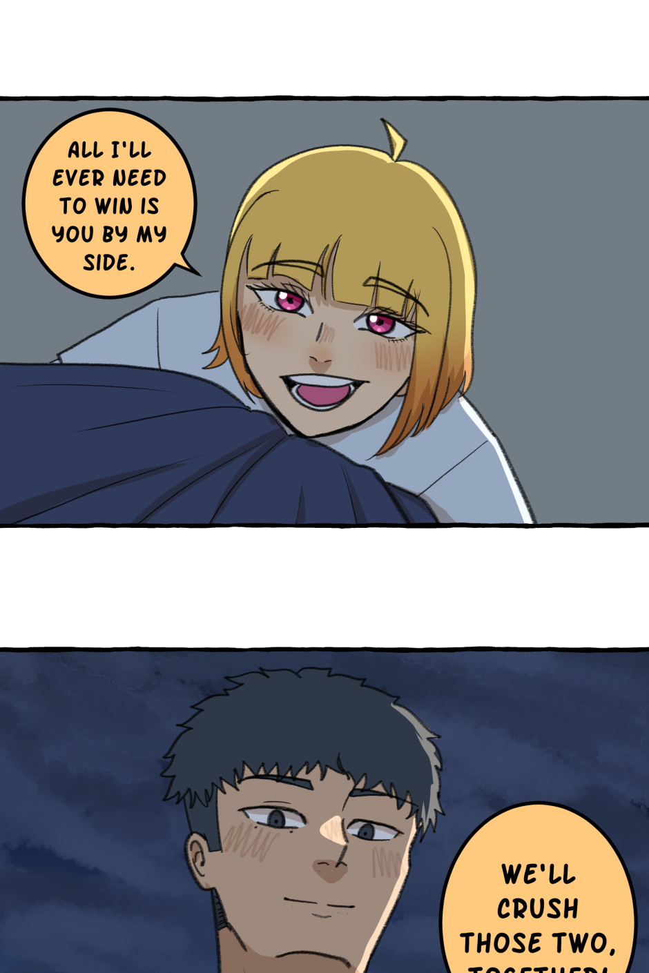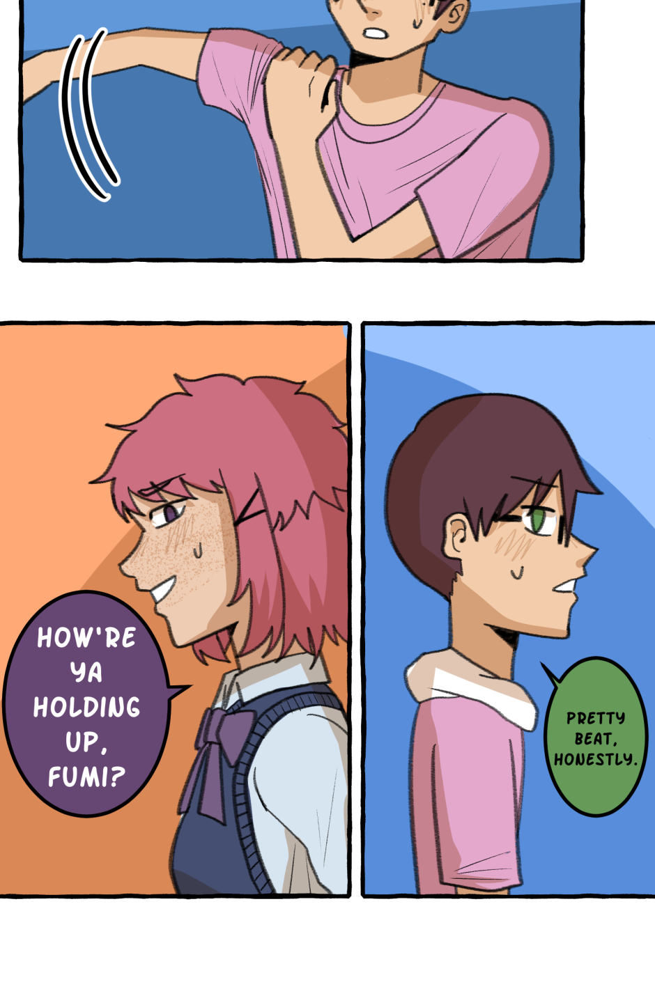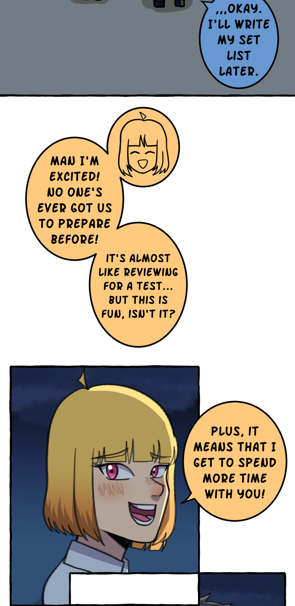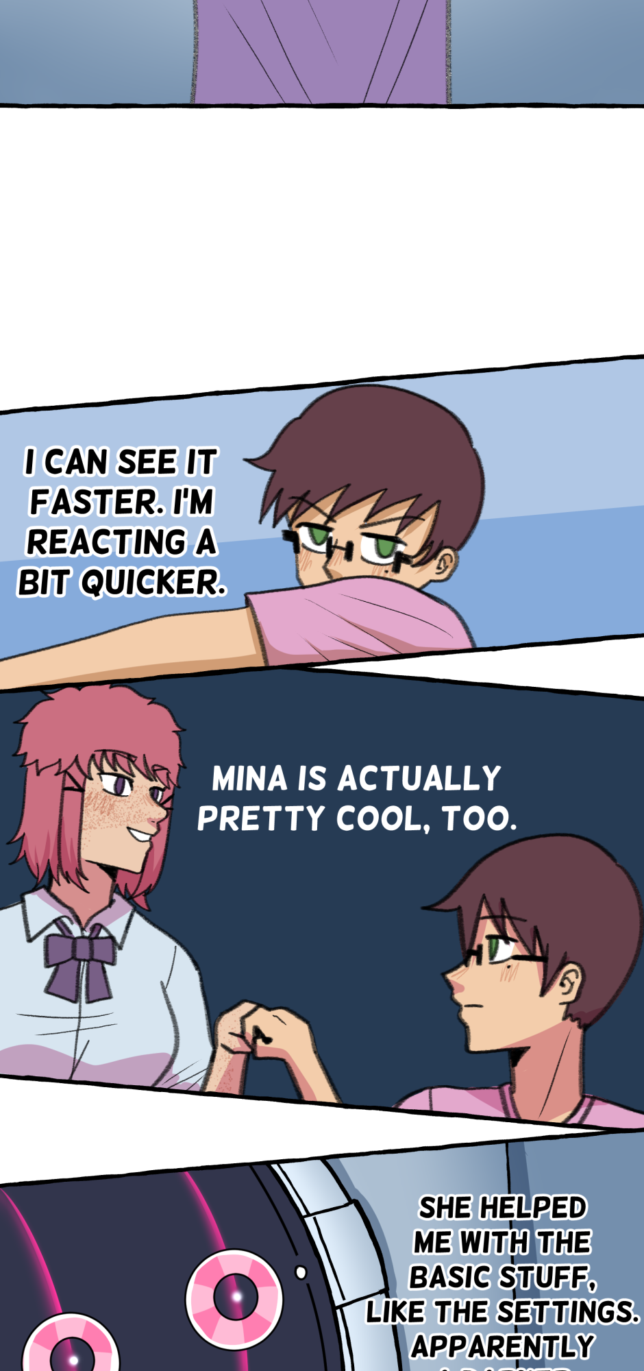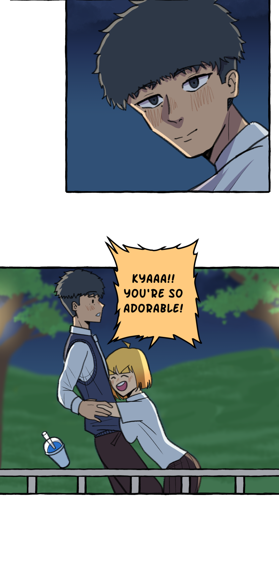 Fumi's school has a hierarchy based on their skill at rhythm games. However, he sucks at rhythm games, and is barely hanging on in the school rankings! A transfer student comes and declares that she'll take over the school and get rid of the ranking system! She wants him to climb to the top with her, but will he be able to catch up? Updates biweekly on Tuesdays, at least until I explode!