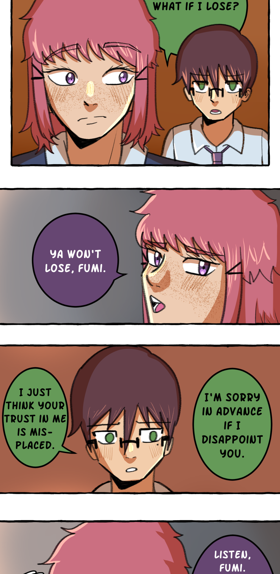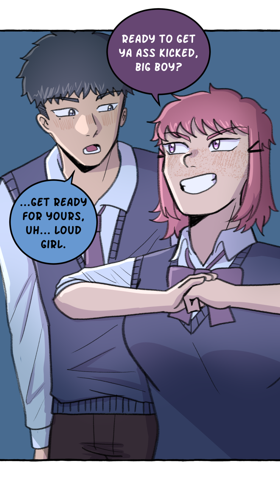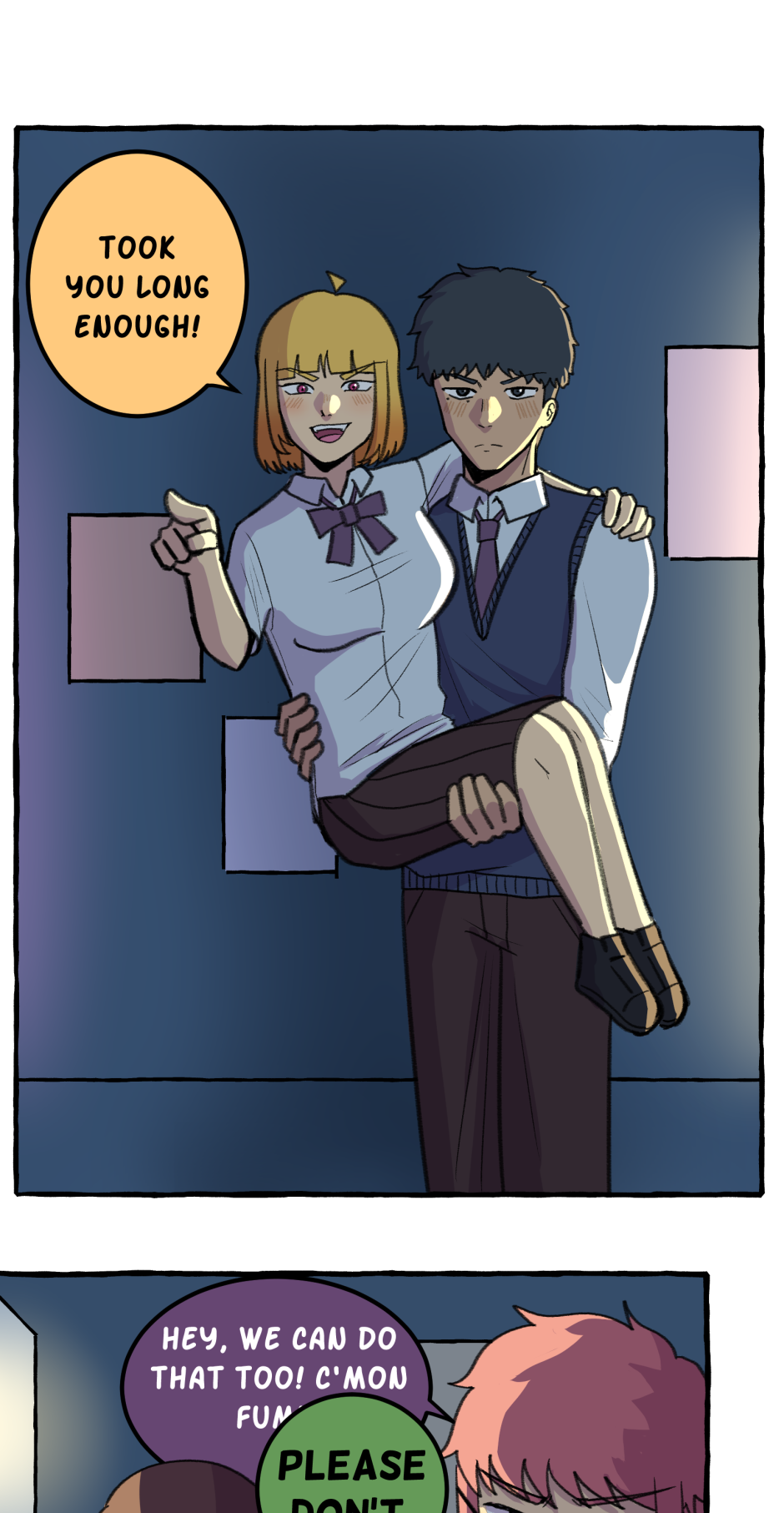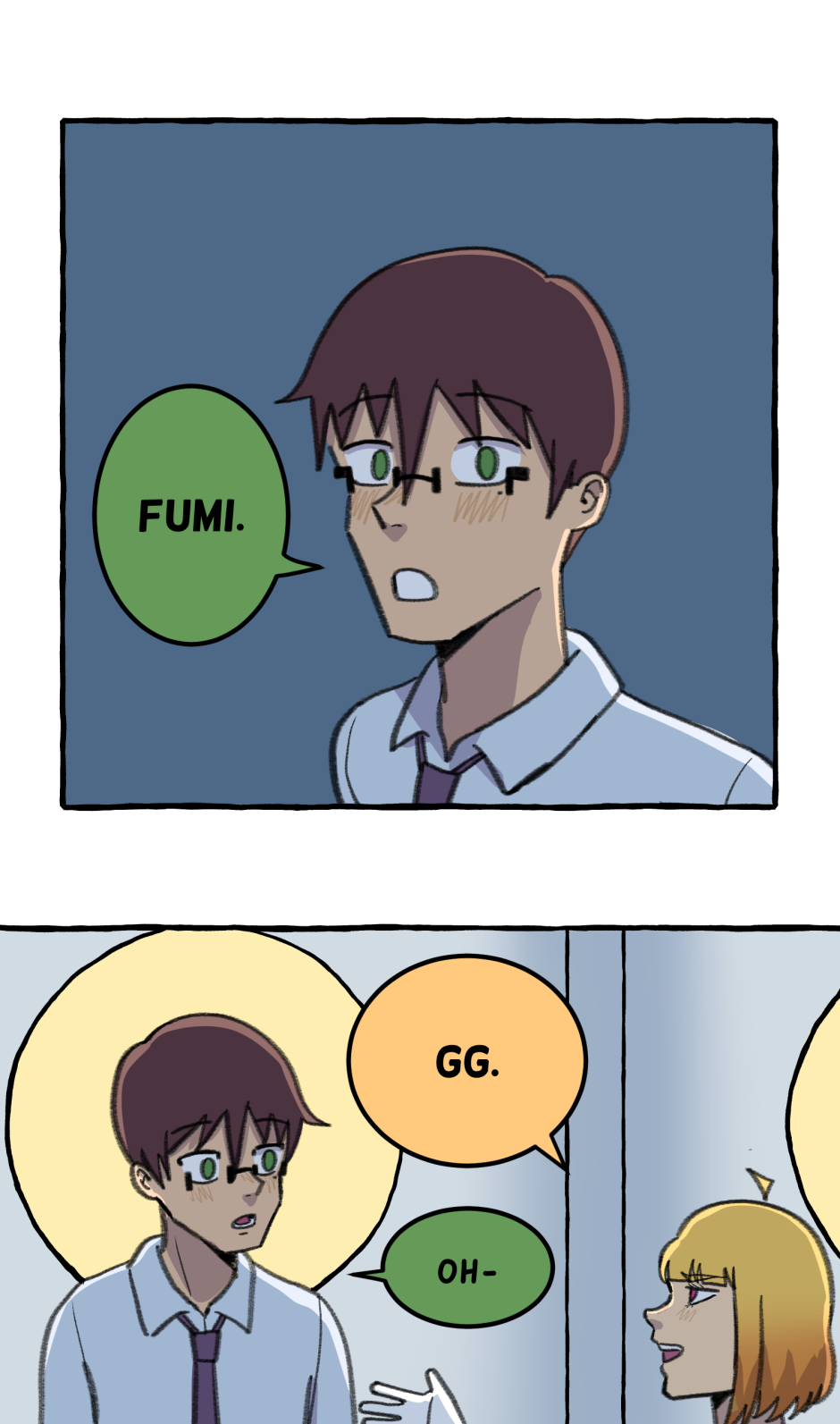 Fumi's school has a hierarchy based on their skill at rhythm games. However, he sucks at rhythm games, and is barely hanging on in the school rankings! A transfer student comes and declares that she'll take over the school and get rid of the ranking system! She wants him to climb to the top with her, but will he be able to catch up? Updates biweekly on Tuesdays, at least until I explode!