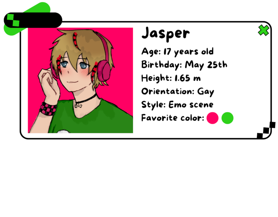 Jasper, a cheerful and colorful scene kid, is starting to explore the world of digital music. Theo, his older and more mature friend, has a passion for art and an emo style. Together, they discover colorful emo love >_< ! with all the shades of the rainbow.