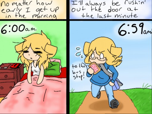 it doesn't matter what time i get out of bed. i'll still get out the door at the same time.