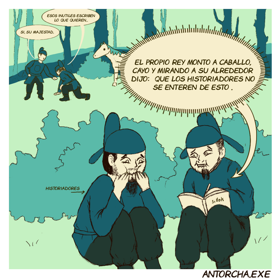 Una historia muy citada en el sillok, los Anales de la Dinastía Joseon, sobre la caída del rey Taejong de su caballo ejemplifica el compromiso de los historiadores de la corte de Joseon de documentar incluso los sucesos desagradables o embarazosos para el rey y hasta qué punto éste no podía influir en las historias que se incluían en el sillok.