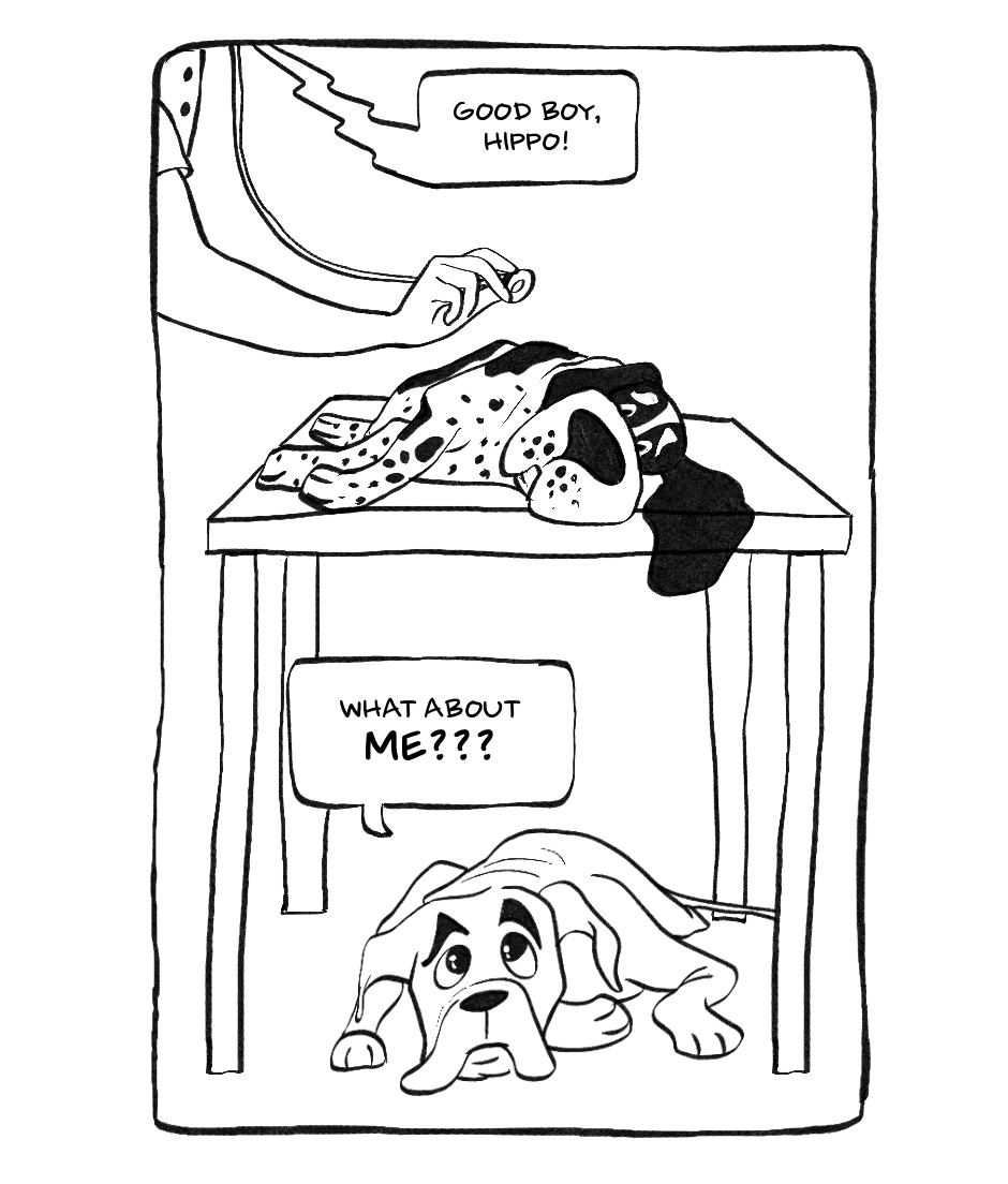 Ellie's hilarious journey through the maze of canine jealousy as Hippo becomes the center of attention. A tail-wagging tale of misunderstandings, ice cream, and cone-shaped fashion statements!