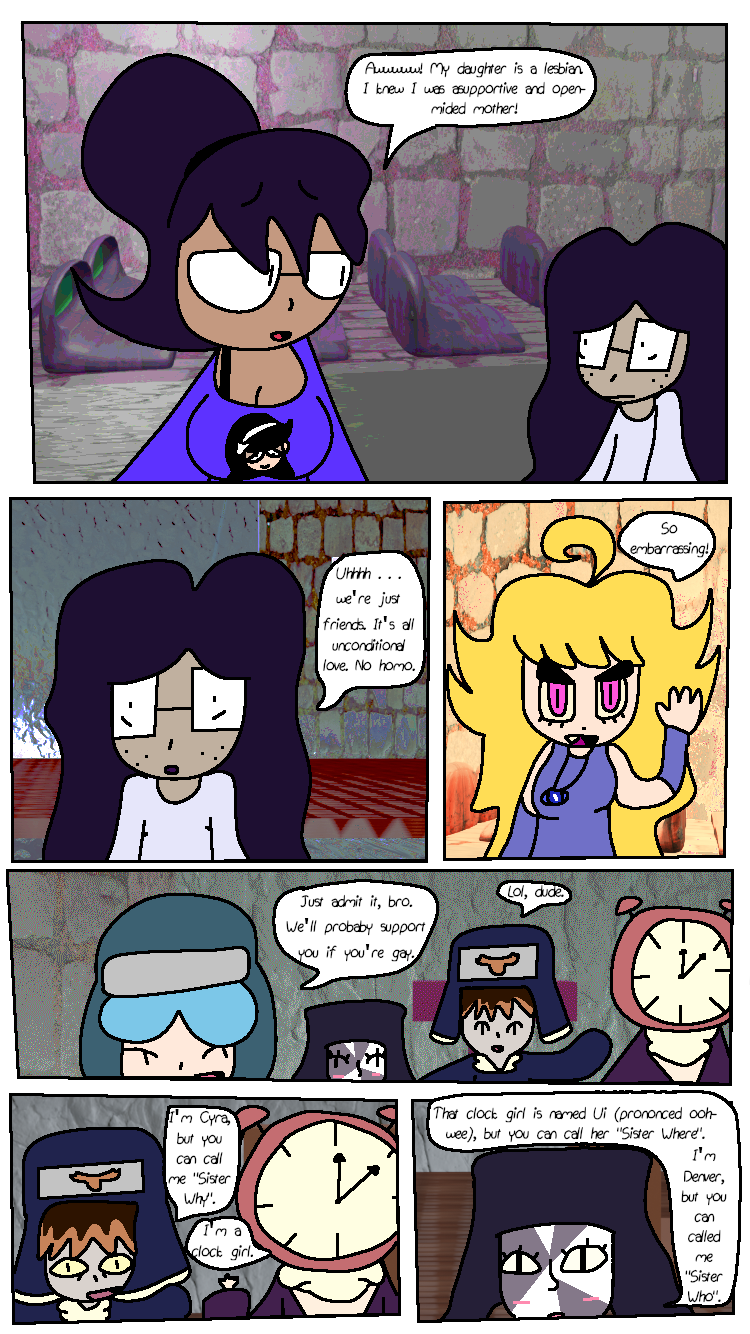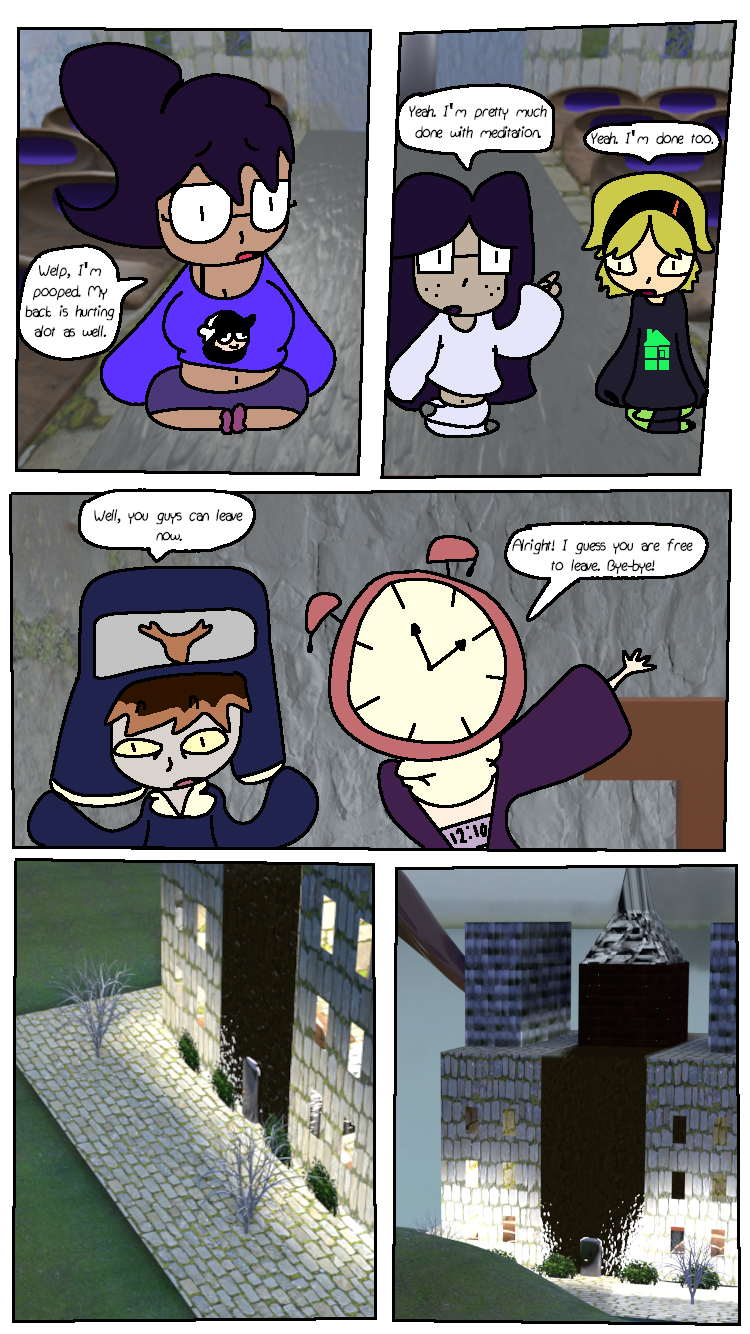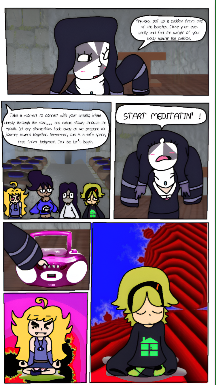 Noni, Shizuka, Ichika, and Durian try a meditation session at the church.