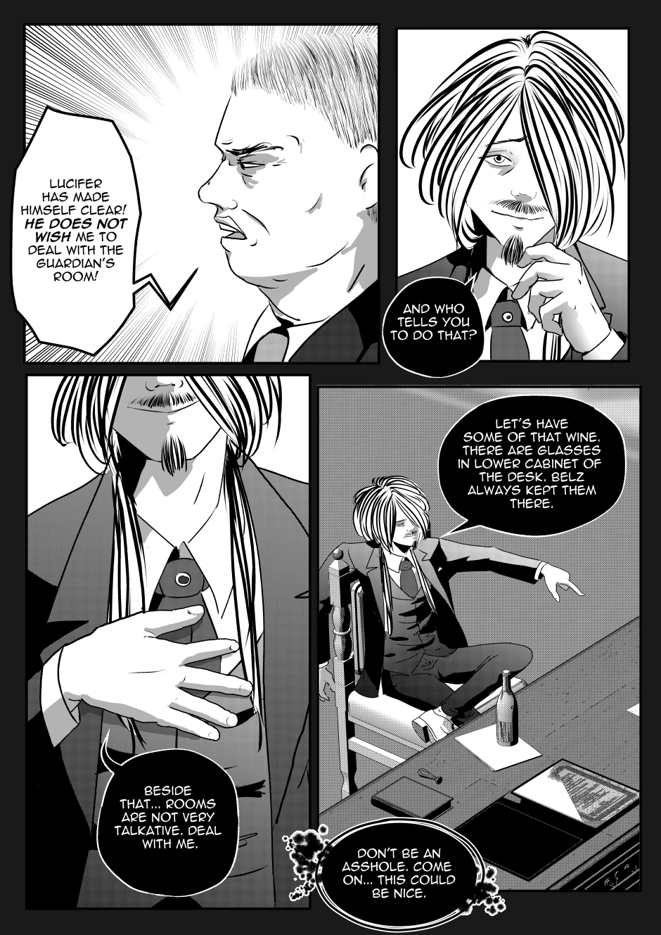 In a hellish world where law and conspiracies clash at every turn, a brutal power struggle erupts. Mephistopheles, the master of pain who rules over demons from the shadows, faces an unexpected challenge from Otto - a young, plump bureaucrat who unexpectedly takes a position in the throne room. Otto, faithful to the letter of the law, tries to hold Mephisto accountable, thus violating a centuries-old order of things.