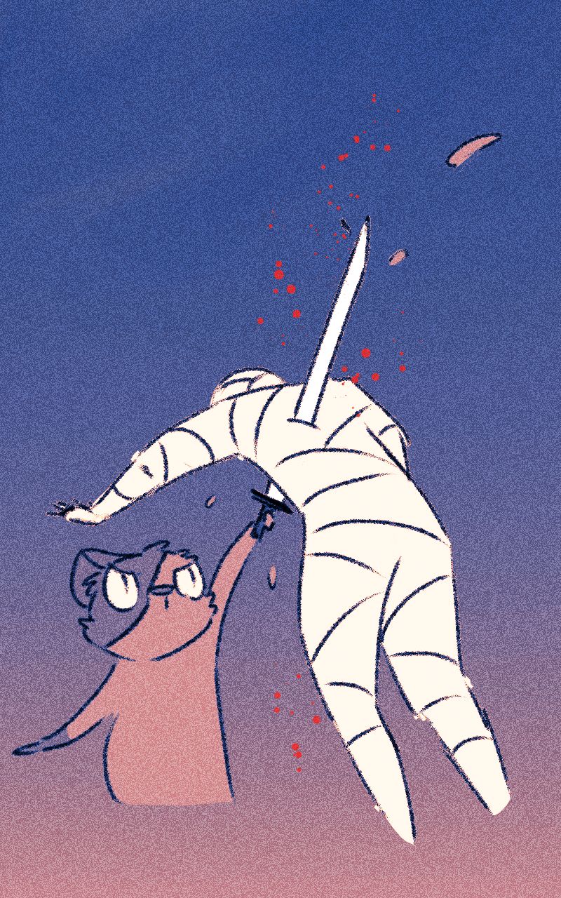 When I drew this I had had an accident so it represents one of the injuries I had and how my little animals reacted to them... at least in my imaginat-- I mean, in the pirate cat's imagination.