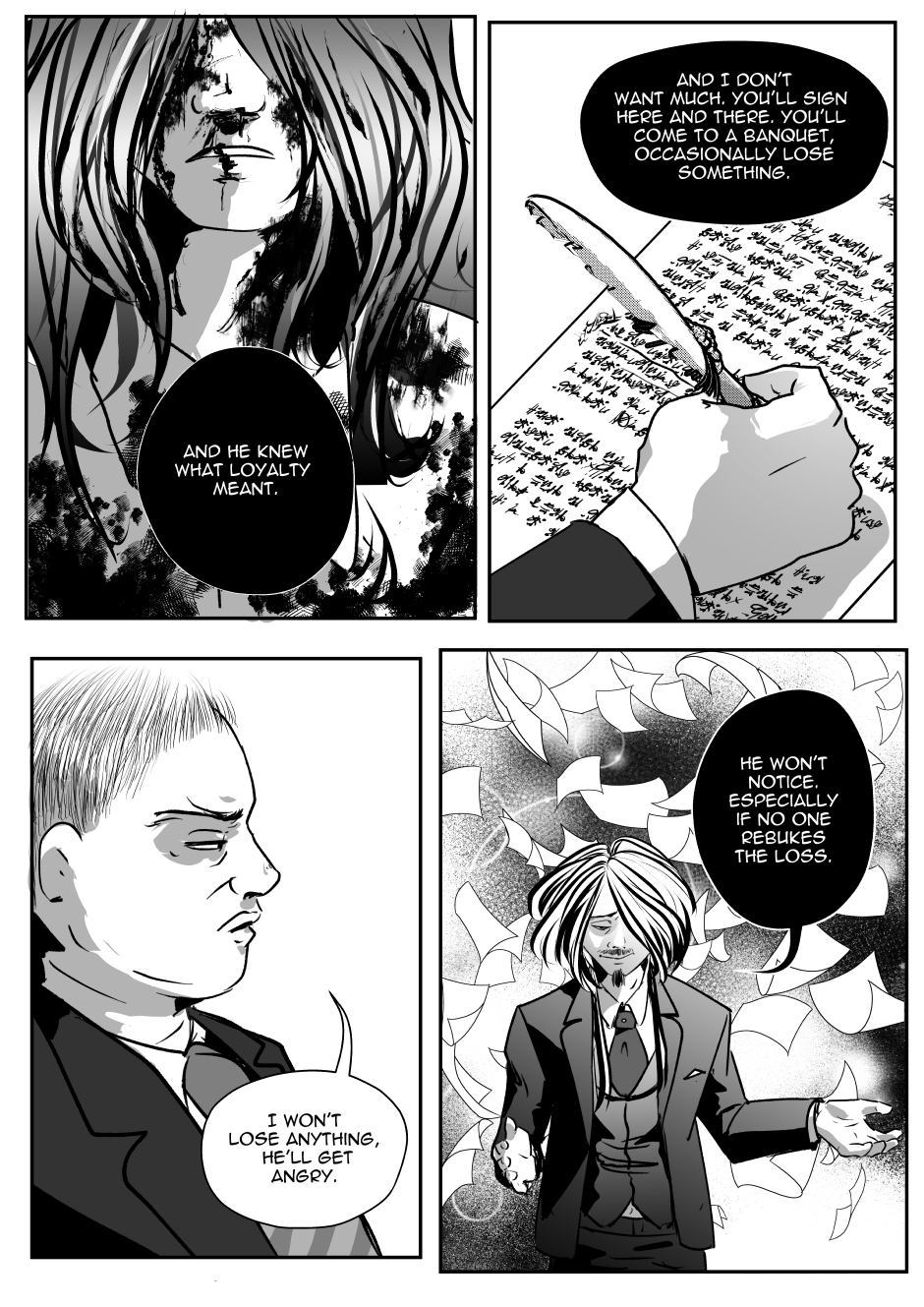 In a hellish world where law and conspiracies clash at every turn, a brutal power struggle erupts. Mephistopheles, the master of pain who rules over demons from the shadows, faces an unexpected challenge from Otto - a young, plump bureaucrat who unexpectedly takes a position in the throne room. Otto, faithful to the letter of the law, tries to hold Mephisto accountable, thus violating a centuries-old order of things.