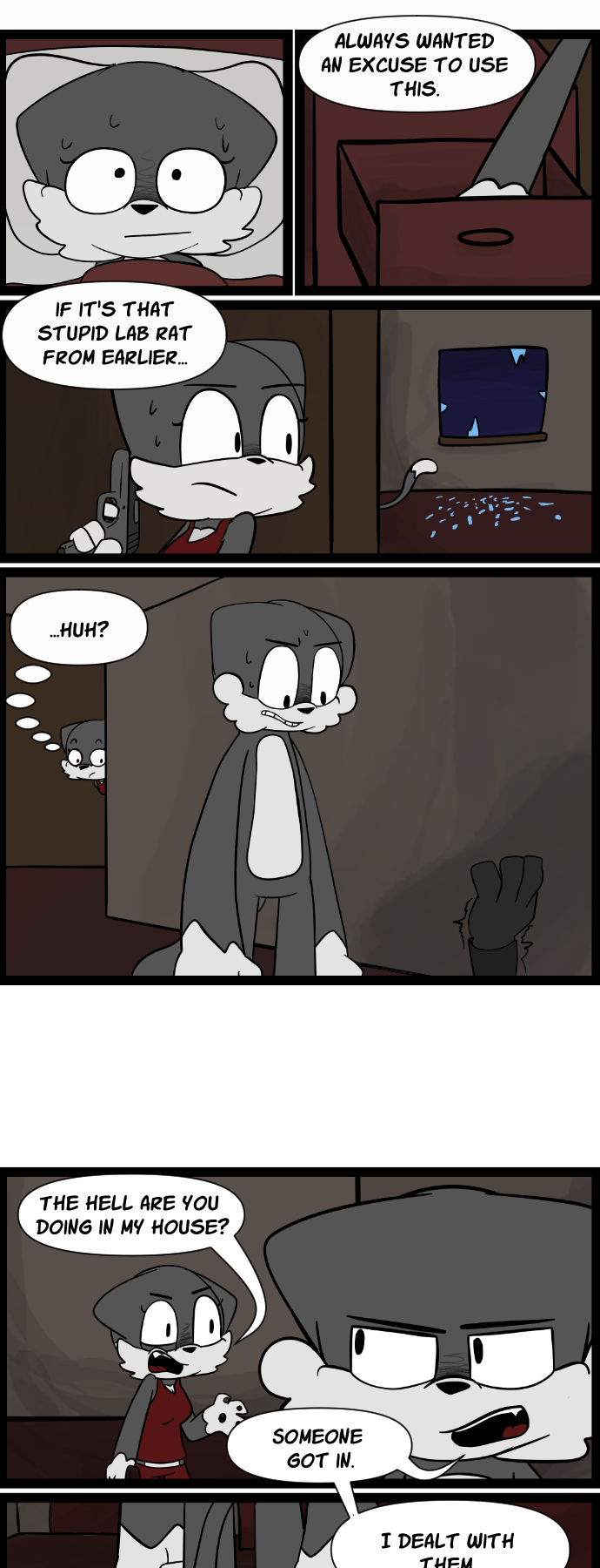 Scratch successfully stops a burglary attempt on Purr's home.