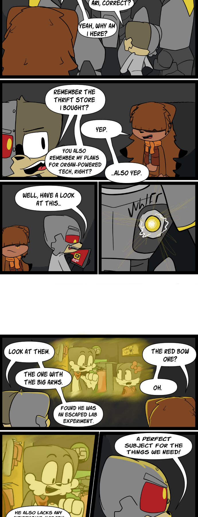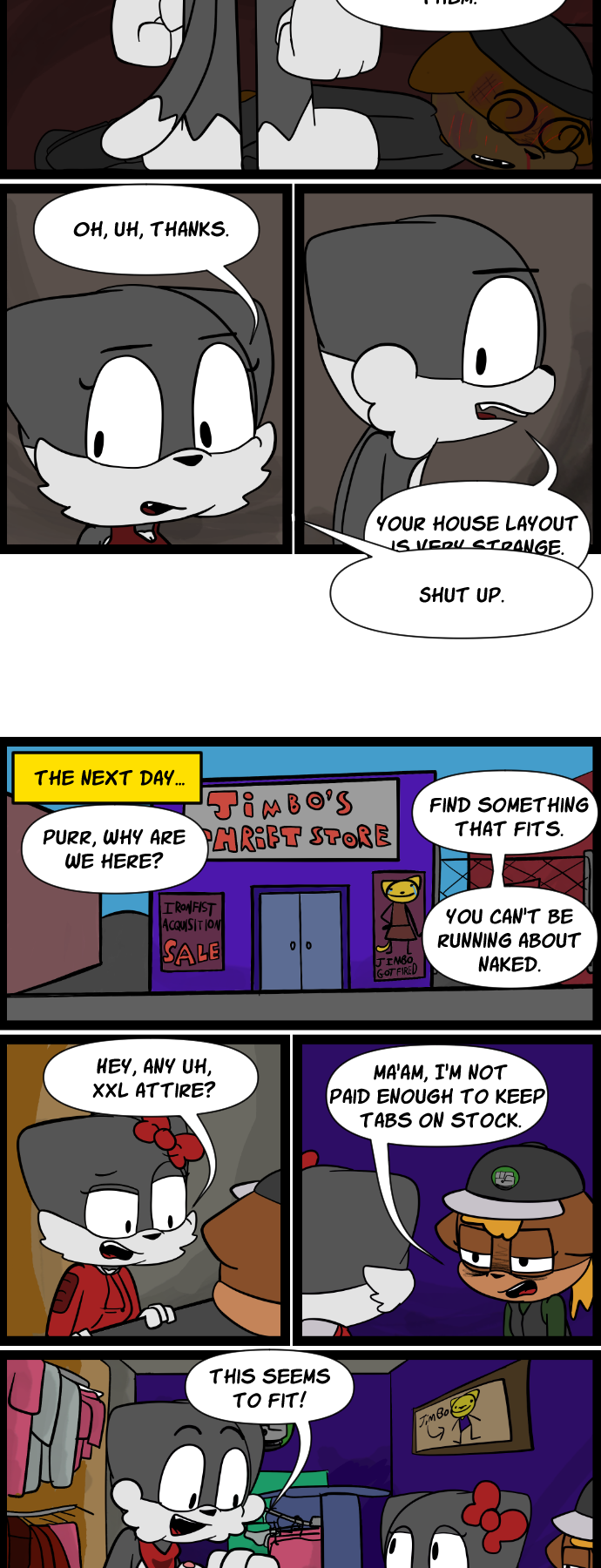 Scratch later pops down to the local thrift store to find himself clothes so he doesn't run about naked everywhere.