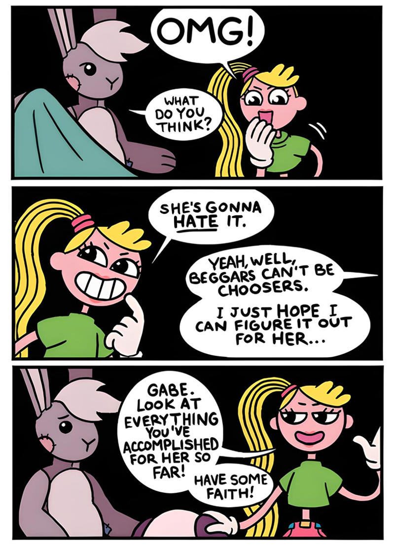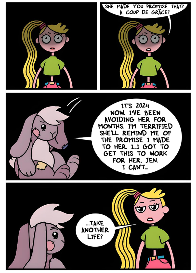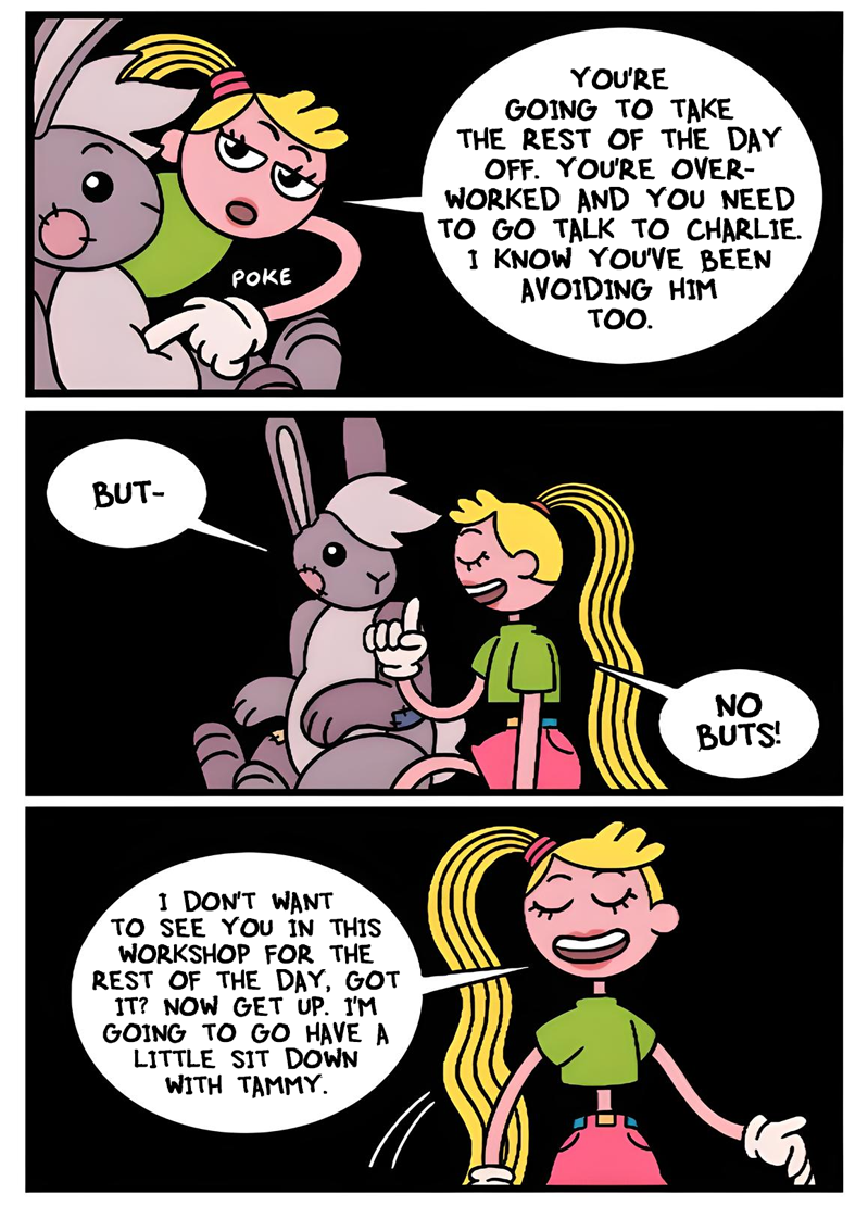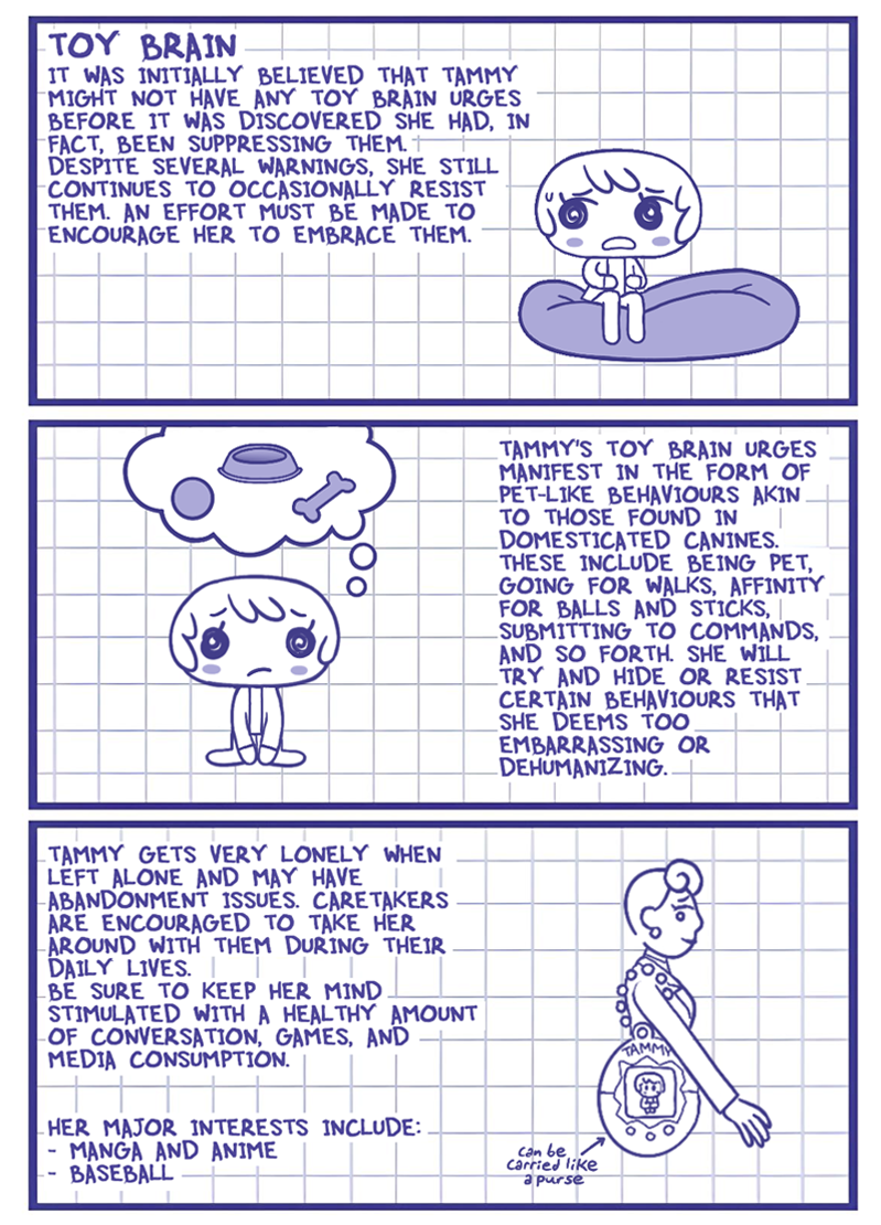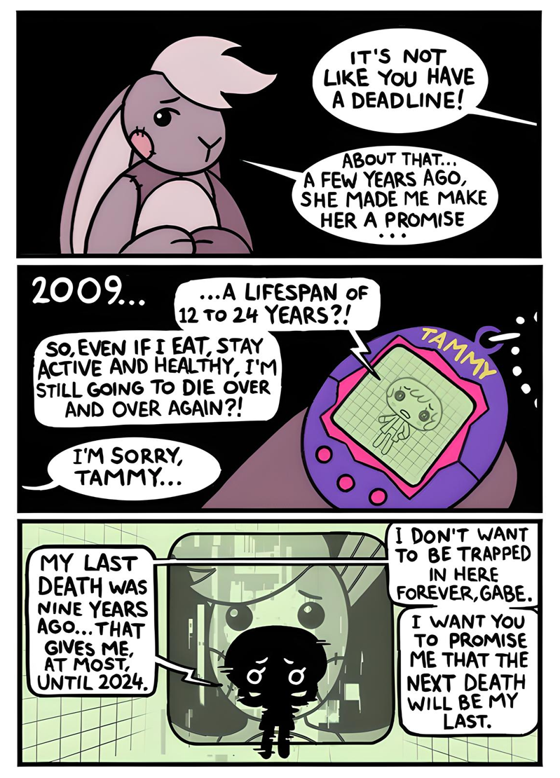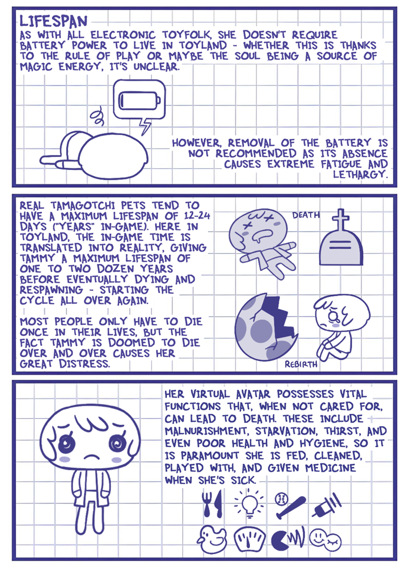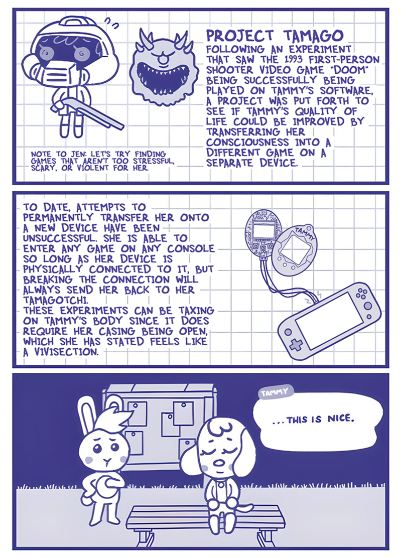 Does Tammy follow the rules of whichever game she's in, as in she doesn't get hungry or tired in Doom? bc being plugged into ACNH forever would be nice, no death just a nice chill eternity