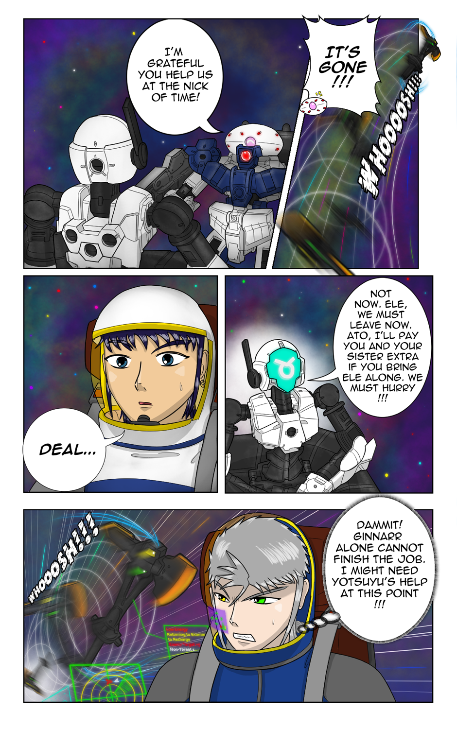 In a distant galaxy ruled by AIs, space couriers Ele and her team are entrusted with a mysterious cargo: an empty AI Transhuman body. Pursued by AI agents, Ele must fight back using her Exomec, a customizable mech for space travel. As the chase unfolds, Ele, an AI existing within an artificial body, embarks on a journey to learn humanity and fight for her newfound freedom.