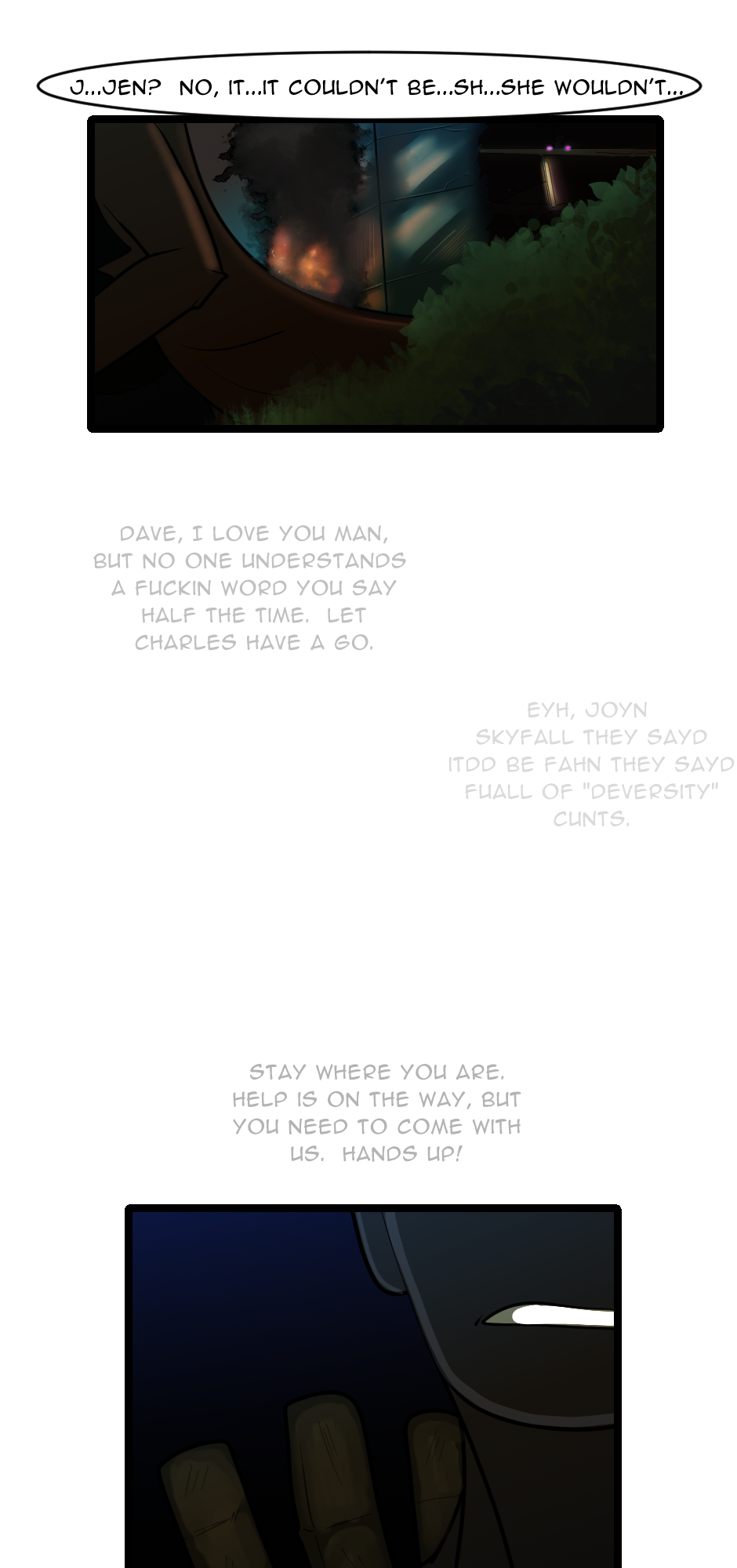 A shor>>T, experIMEntal comIc about the woeS of the woRking world, dreams, and the dangers of sUbstaNce abuse. WIM NavIgates what is real, aNd what is not; is it a trip? Is it reality? What cryptic messaGes does the wOrld offer her on her joUrney T<<hrough life ahead of her?