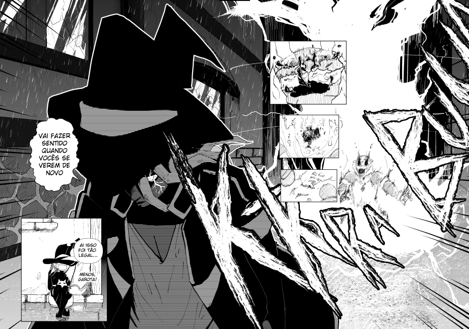 É uma vitória bem grande pra mim que já tive altos e baixos enquanto fiz esse quadrinho, quase um ano sem trabalhar nele e agora poder finalizar essa primeira história me faz sentir muito bem e vitorioso. Mais de 100 páginas feitas, muitas horas de trabalho e eu espero que vocês tenham gostado até aqui!