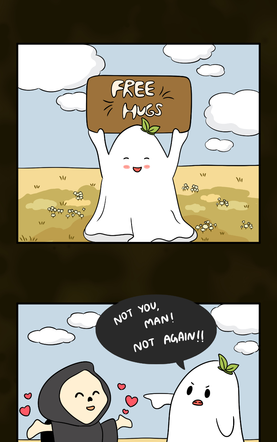 "Happily Haunted" is a sweet and sassy comic about Fizzie, a fun-loving ghost navigating the afterlife with humor, heart, and a dash of chaos. From funny mix-ups to witty antics, it's a charming peek into the not-so-ordinary life of everyone’s favorite spirit!