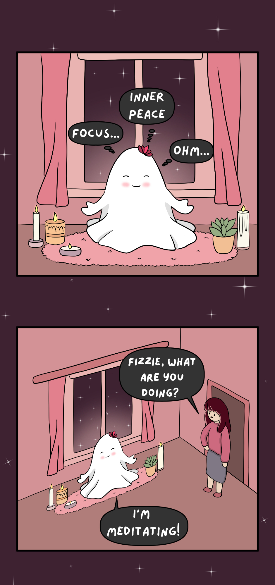 "Happily Haunted" is a sweet and sassy comic about Fizzie, a fun-loving ghost navigating the afterlife with humor, heart, and a dash of chaos. From funny mix-ups to witty antics, it's a charming peek into the not-so-ordinary life of everyone’s favorite spirit!