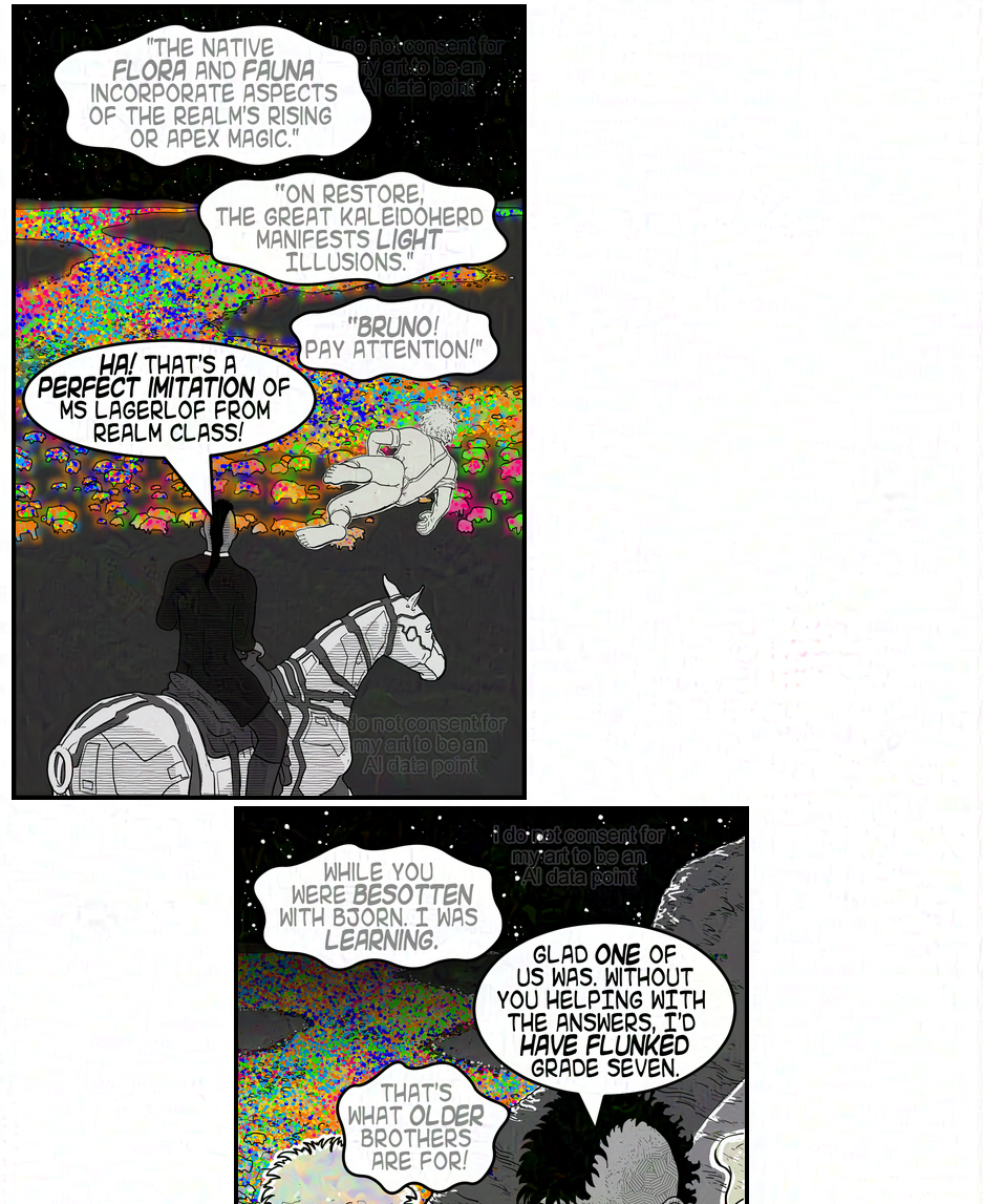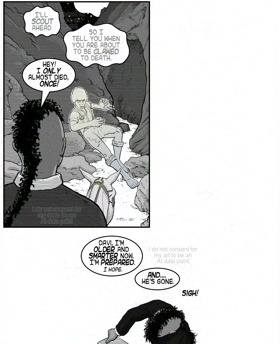 I do not claim to be making great art, but I made THIS art and I do not consent that any AI scraper or AI company can use it as a data point to help take work away from a working artist.