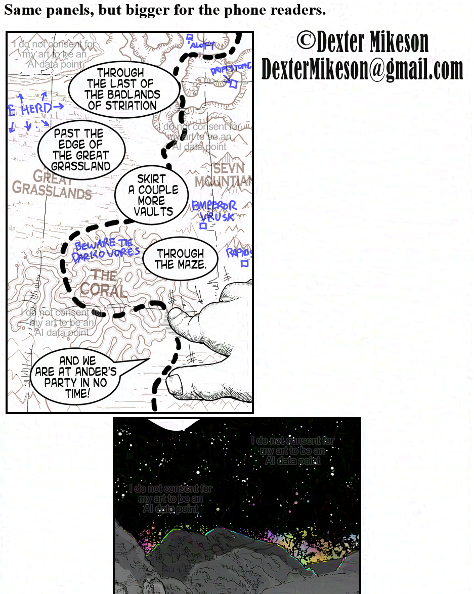 It's been a while. The rendering techniques of each panel keeps changing because so much time has passed between panels and I keep changing as a person.