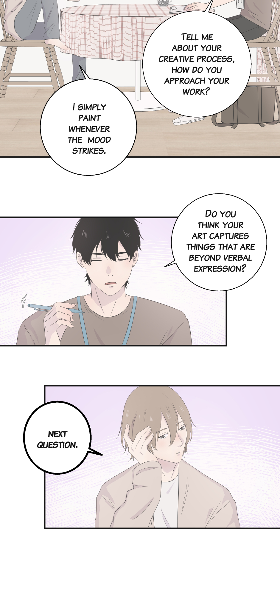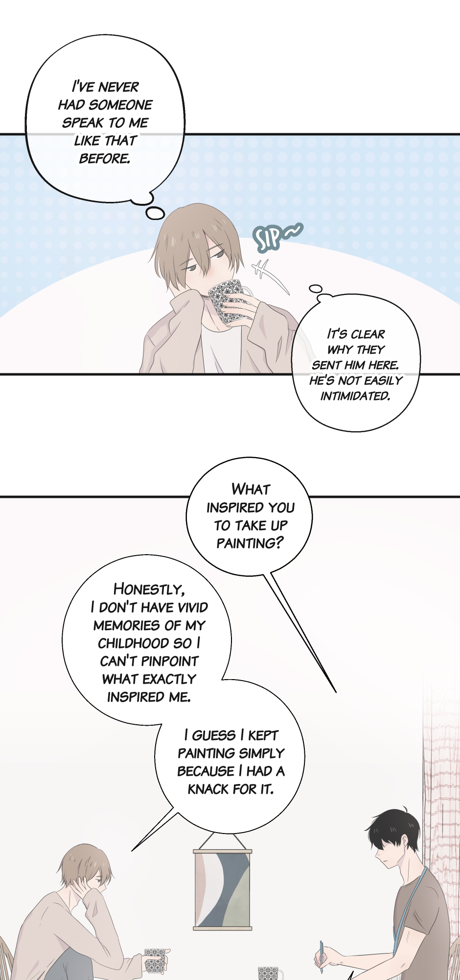 Taka is a journalist tasked with interviewing Avalon, a reclusive artist with a reputation for being difficult. Determined to get past Avalon’s cold exterior, Taka sets out to write a compelling story. As the interviews progress, the more Taka gets to know Avalon, the more he realizes there’s much more to him than meets the eye. What Taka didn’t expect was how deeply he would be drawn to the mysterious artist, leading to emotions he never anticipated. (BL)