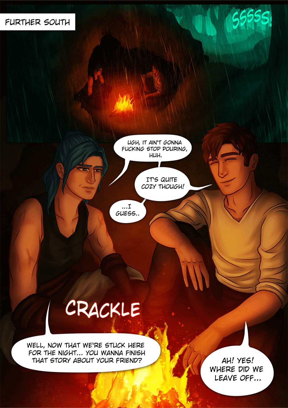 Having sought shelter from the rain, Ryelle and Ianry get to talking...