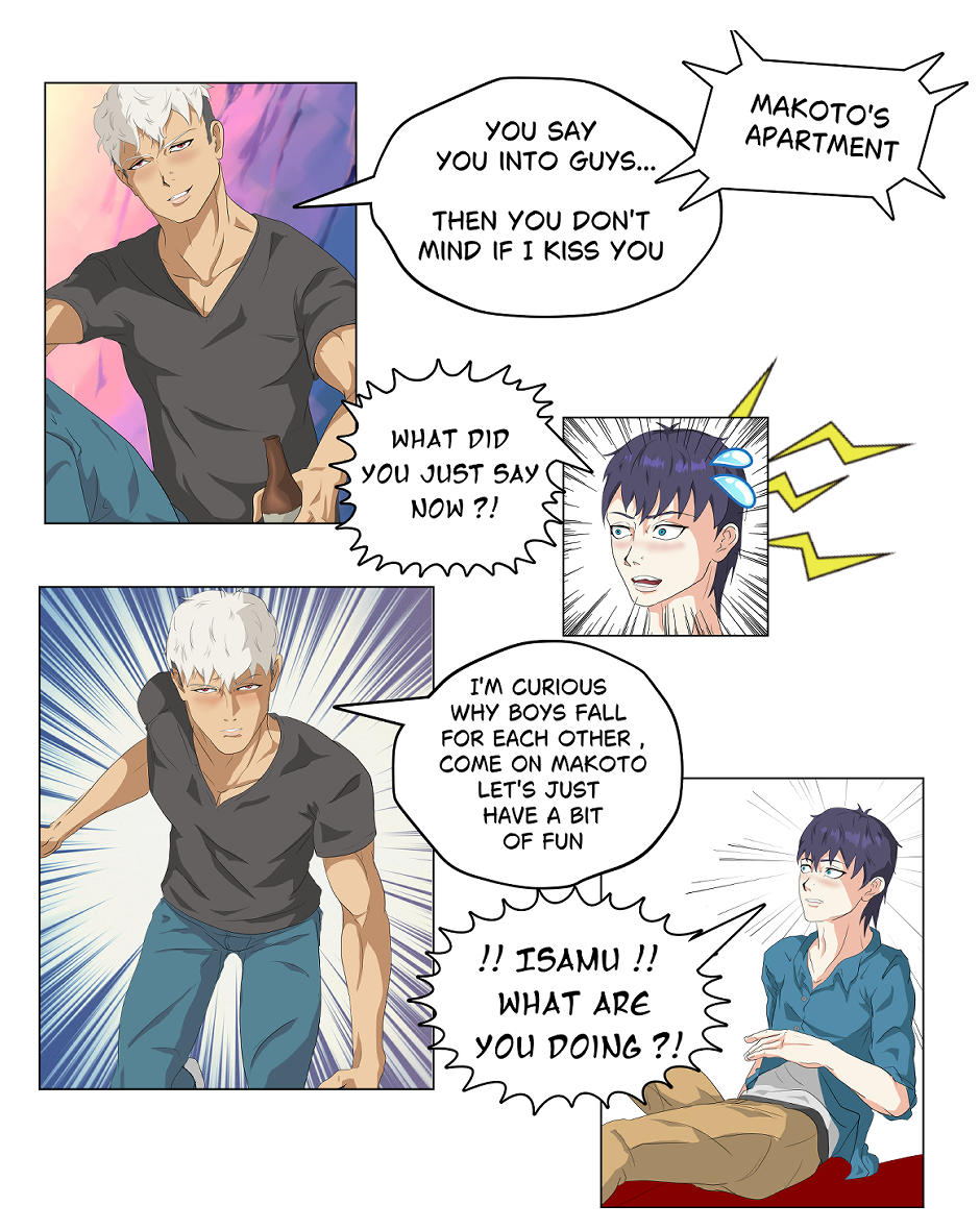 Makoto carries on with his love story tale with Isamu, and things get heated up between them.