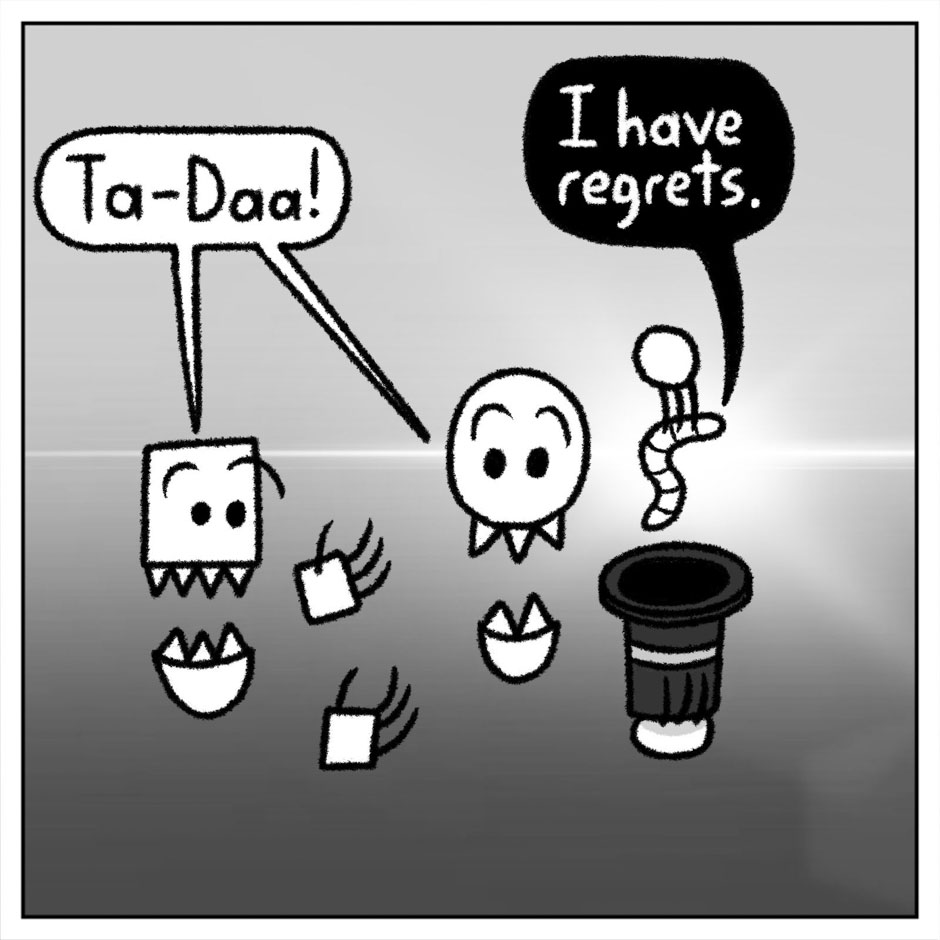 Sometimes you only need one panel to work your magic! introducing Mini-Episodes, a bite-size version of your classic Skullys shenanigans. These will occasionally come out in place of standard strips, but expect to see more uploads in the weeks that have them!