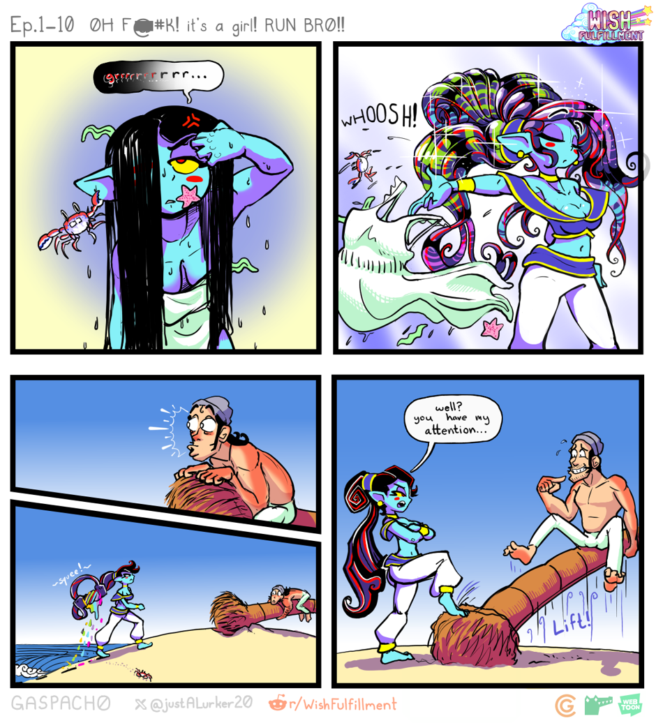 At last! The web-comic where all of your wishes come true, (sort of...) has arrived! Wish Fulfillment has us job shadow Spooky; An overworked and grossly underpaid Genie, as she works to satisfy her endlessly growing client list. Her trials and tribulations are varied and numerous but Spooky is a seasoned professional, and is (hopefully) capable of handling anything that comes her way. Remember! Service with a smile! And your wish is (her) command!