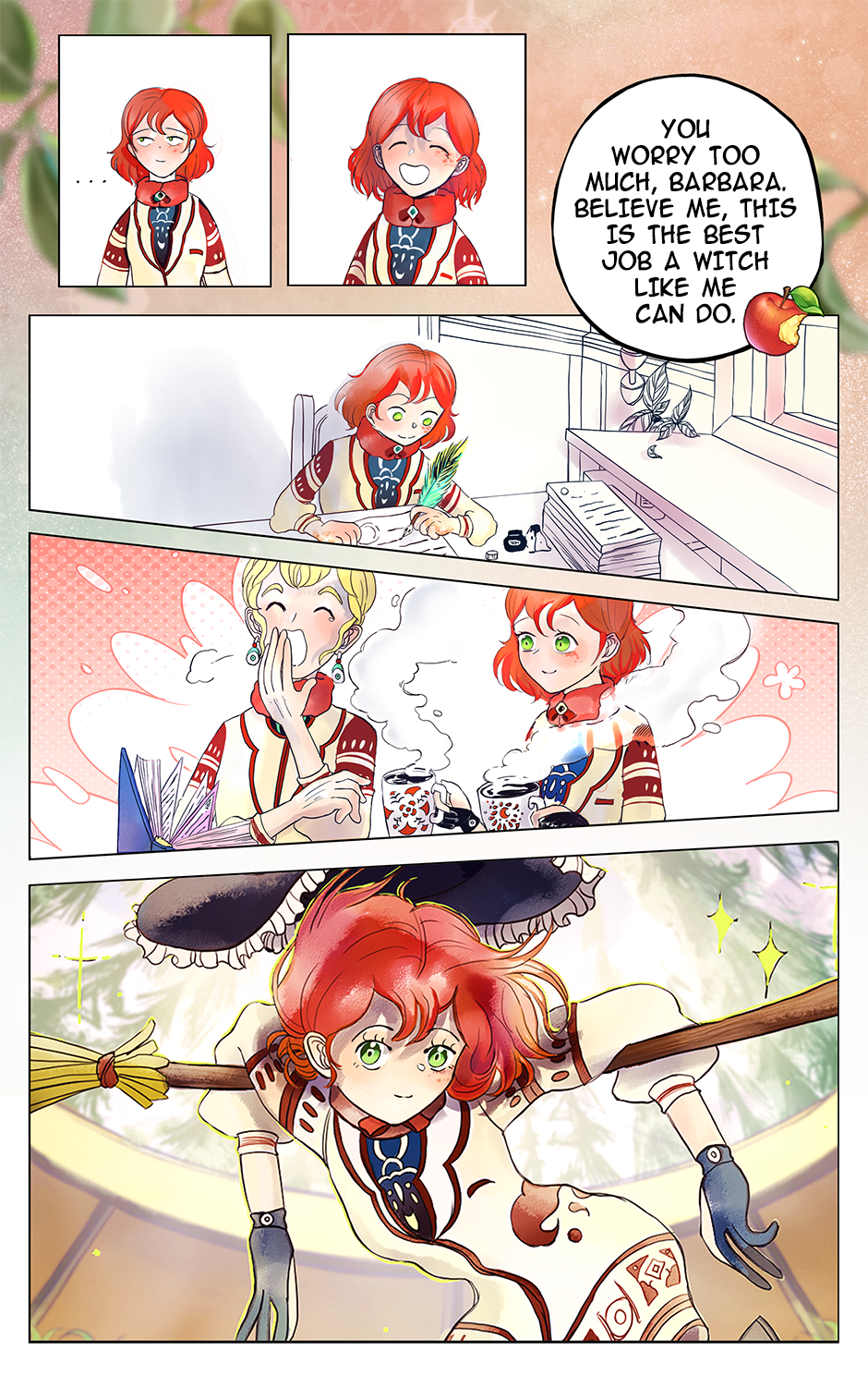 In the midst of dense forests and deep lakes there is a small country. Thanks to the magic of words, both humans and all-powerful demons are able to peacefully live there. But how could anyone control such a complex system? Witches are coming to help! Who if not them will help you to make sense of a meticulously designed demonic contract or to receive your documents if you are a new member of society. Our story starts at a small border crossing post, where a red-haired witch named Nina works.