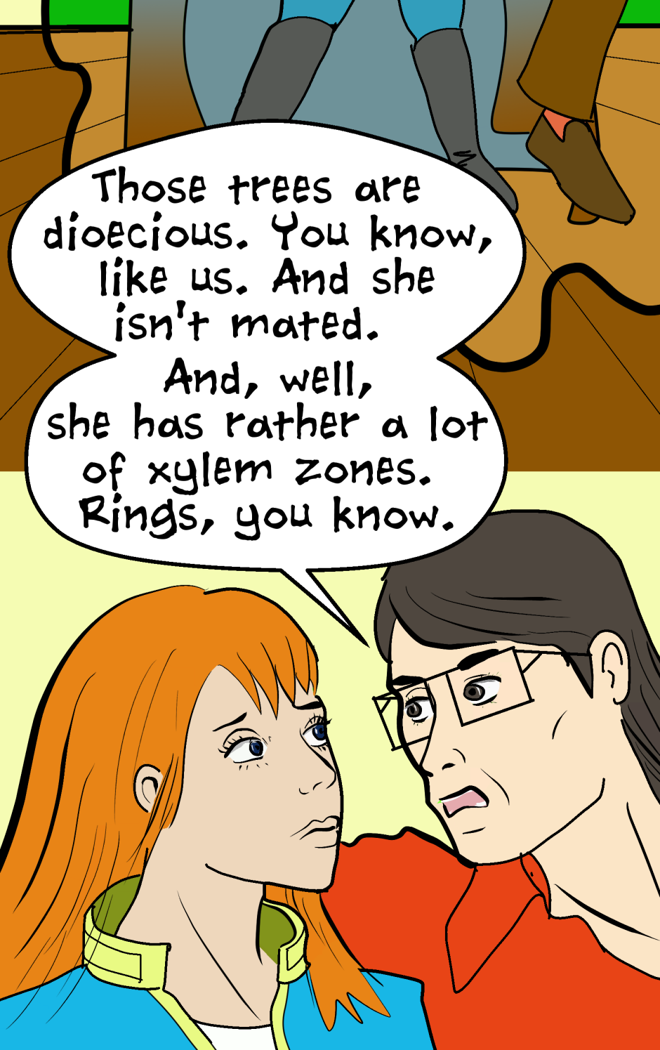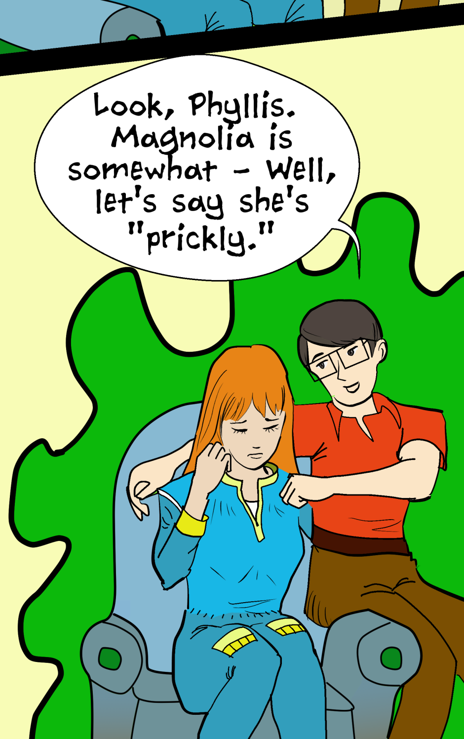 Cute redhead Phyllis and Jim, a newlywed couple united on the planet Elysium, continue to discuss Jim's relationship with the alien tree, to whom he has given the earth name "Magnolia".