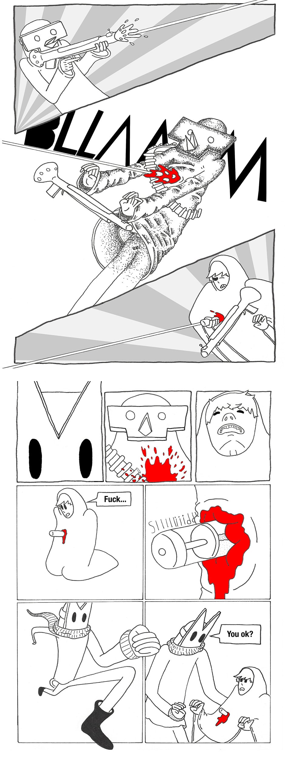 Have you ever wondered what are world would be like if it was run by a giant super cult that combines every dark aspect of religion? Boy then do i have the thing for you. In this place humans are turned in to blood thirsty dogs ( both literally and figuratively ) and kids are used as slaves to power giant robots as now humanity is held together by a string. There is also One dumb teenage kid with a sick hair cut and his friend who may are may not be gay ( am pretty sure he's gay ) who is his way to find his sister and burn down the whole system. p.s sorry for my spelling am kinda a dingus...